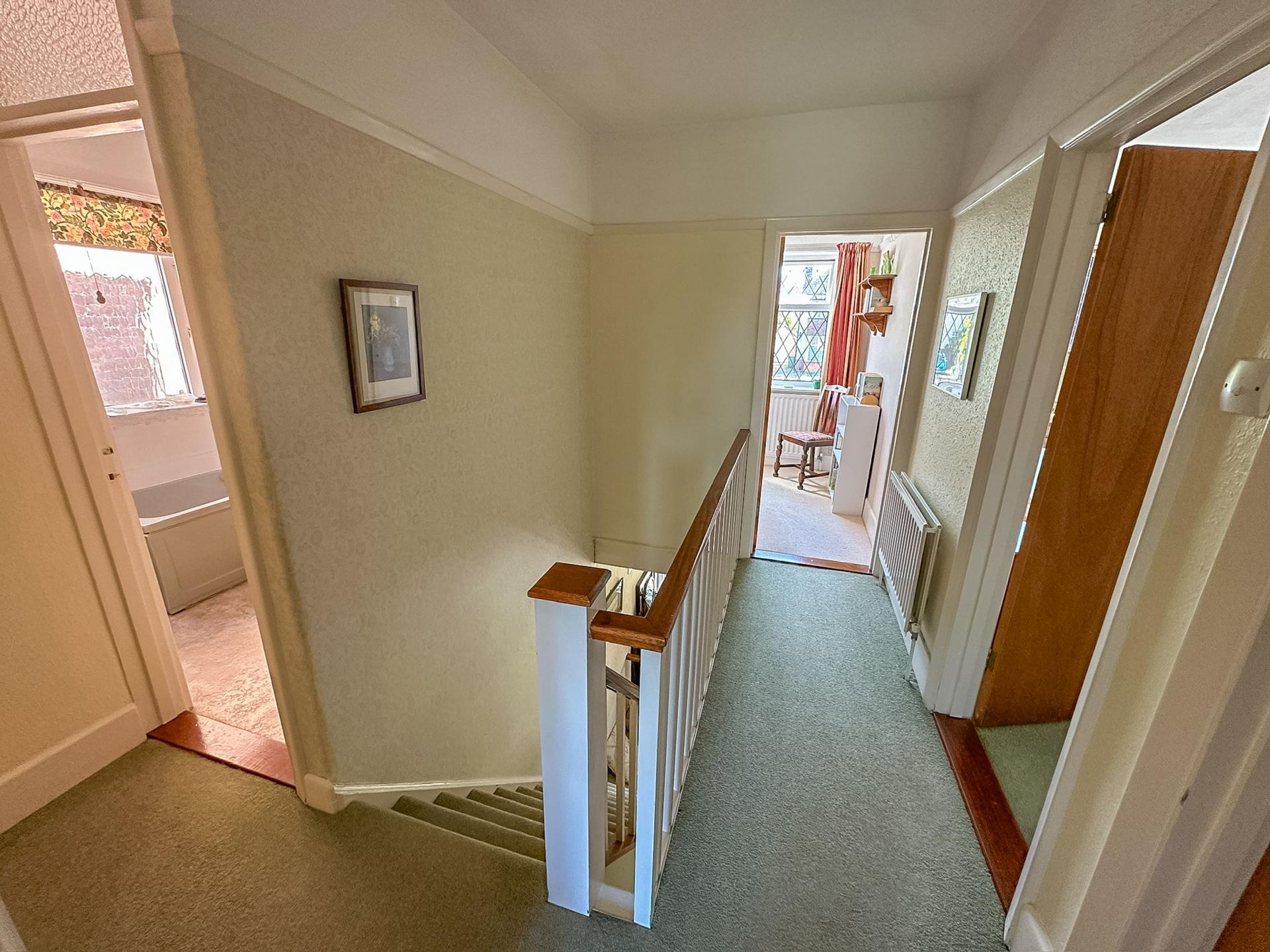FIRST FLOOR Landing with balustrade, access to loft space, doors to primary rooms, built-in airing cupboard with hot water cylinder, double radiator.