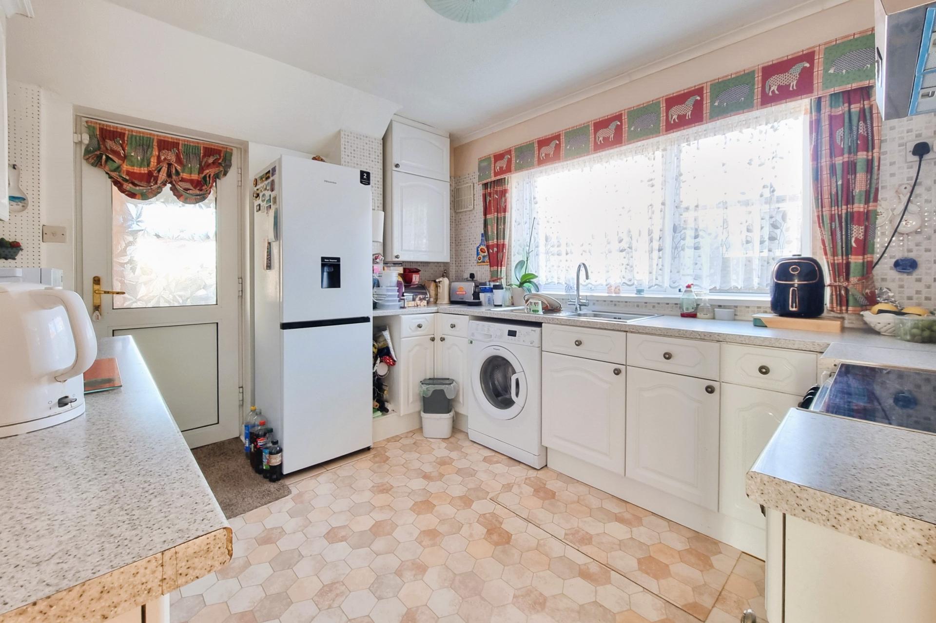 KITCHEN 11' 3" x 9' 10" (3.43m x 3m) Comprehensive range of matching white fronted wall and floor units with roll top work surface, inset single drainer stainless steel sink unit with mixer tap, washing machine point, range of drawer units, gas cooker point with extractor hood, fan and light over, double glazed window to rear aspect overlooking garden, tiled surrounds, vinyl flooring, space for free standing fridge/freezer, glazed panelled door leading to lean-to, free standing Potterton boiler supplying domestic hot water and central heating with timer switch (not tested).