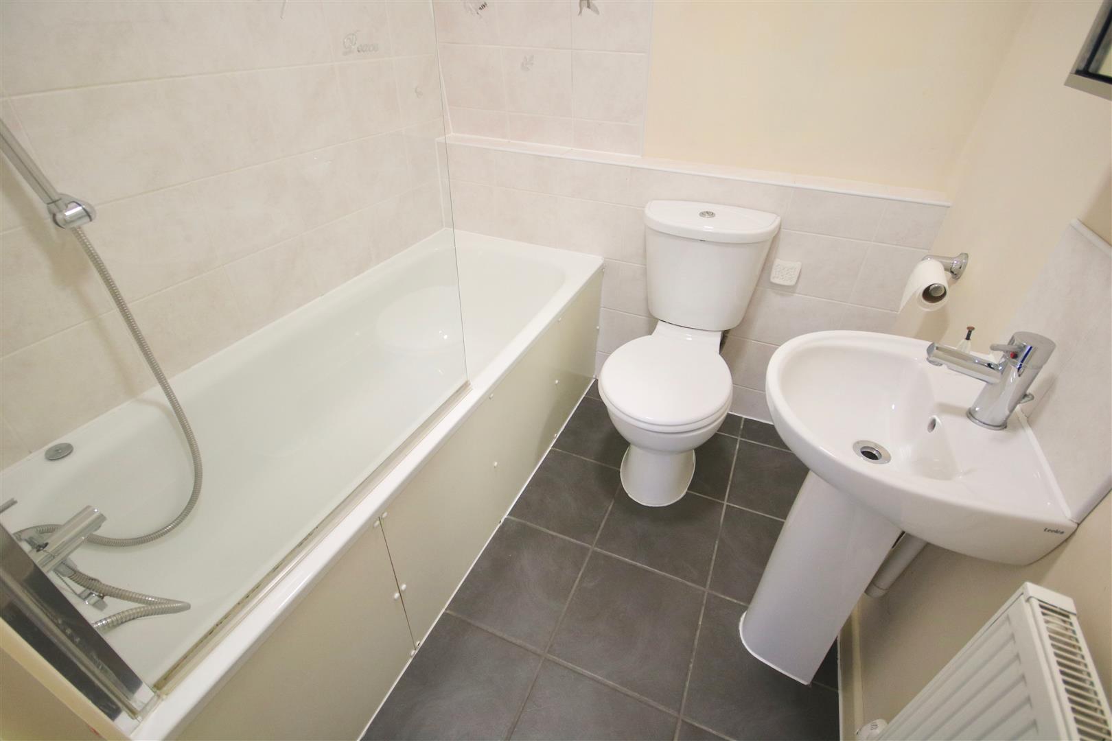 Bathroom - Tiled flooring, three piece bath suite, low level wash basin, panel enclosed bath with shower, mixer tap and shower, smooth wall with tiled principle areas, smooth and coved ceiling.