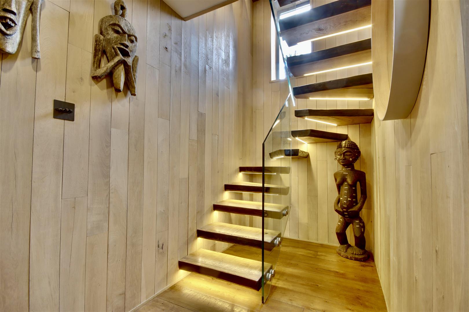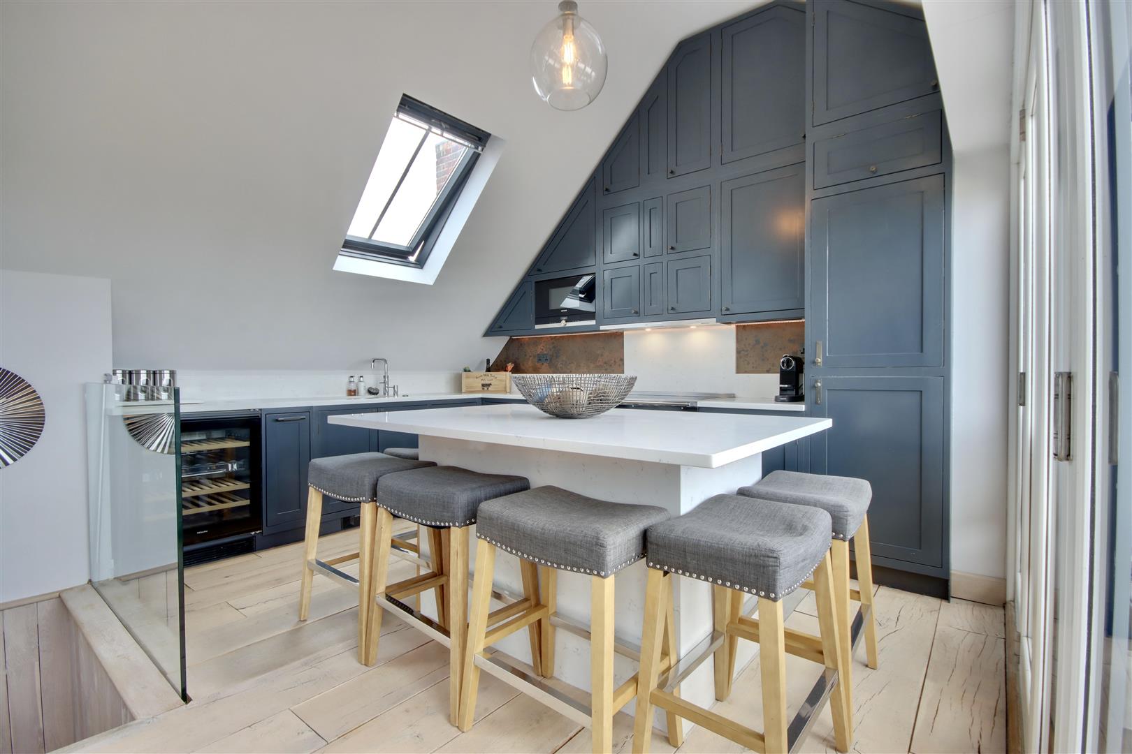 The attention to detail, is staggering, with bespoke carpentry throughout and a stunning cantilever staircase spreading across the three storeys.