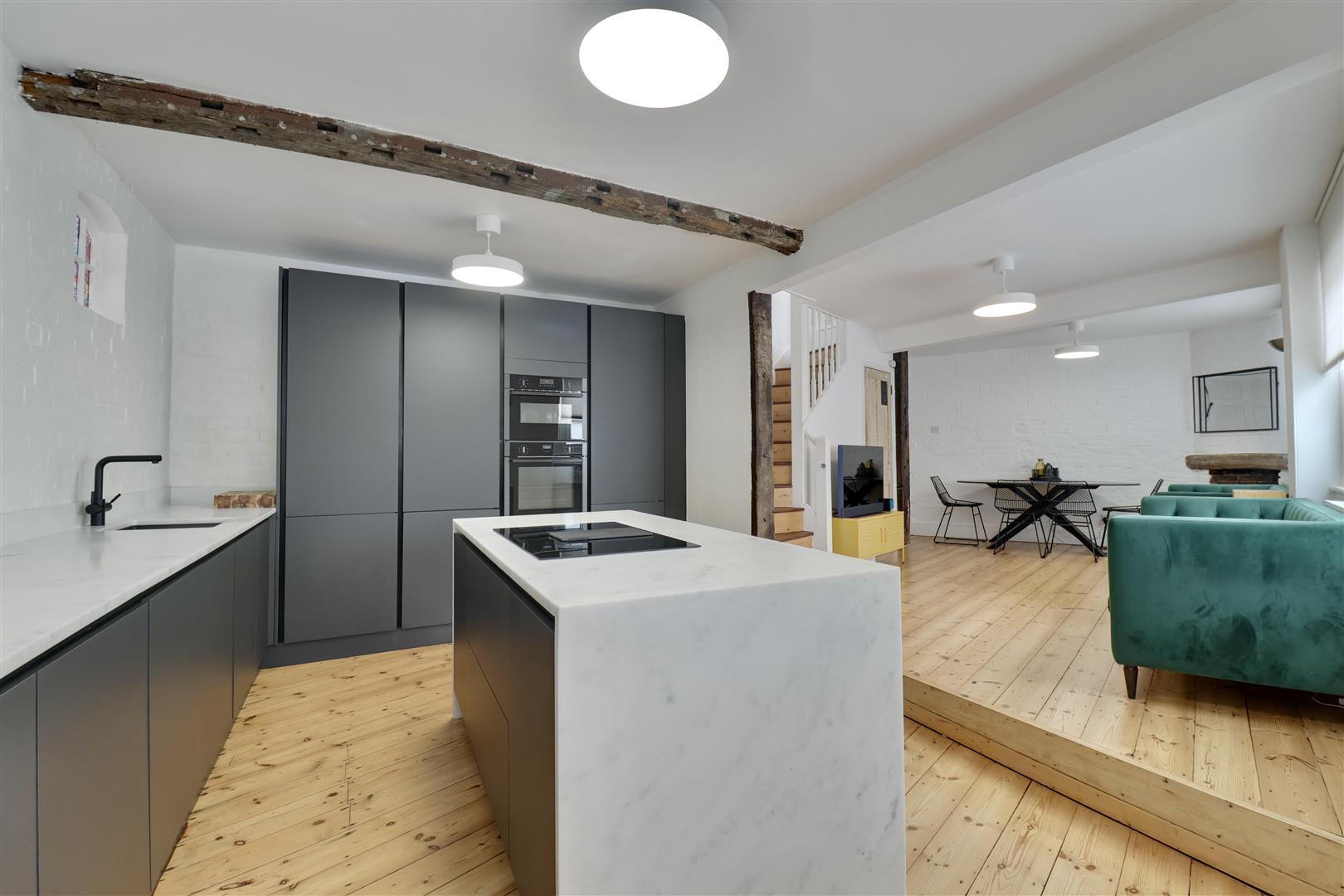 As you enter the property you instantly get a feel for the character and size. Exposed brickwork, wooden beams and original fireplaces really set the tone for this family home. A large living/ dining area is located at the front of the property offering the perfect space for hosting. This space flows perfectly into the open plan kitchen area with an island providing a place for all to gather. A low maintenance rear garden completes the ground floor.