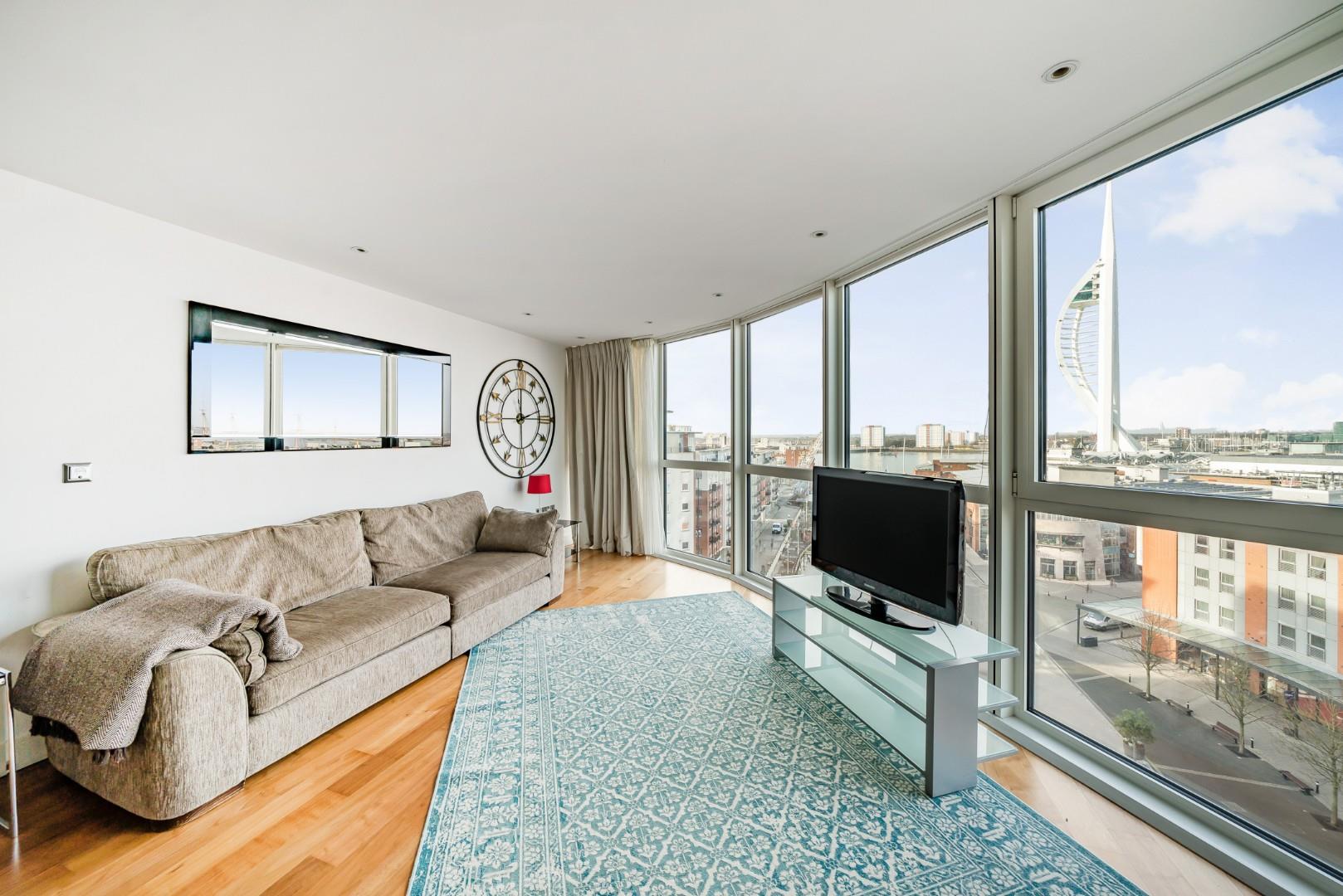 This property needs to be viewed to be truly appreciated as the views are breathtaking with floor to ceiling windows overlooking Portsmouth Historic Dockyard and the iconic Spinnaker Tower, Internally the property is beautifully decorated with modern décor and has a large open plan living space. The kitchen is fully fitted with white goods and is finished with high-gloss handleless units. Three double bedrooms offer further views across the city, two with en suite bathrooms and built in storage space. The master bedroom is a wonderful space with the addition of a private balcony. There is also ample storage in the flat and a modern family bathroom completes the internal accommodation.
