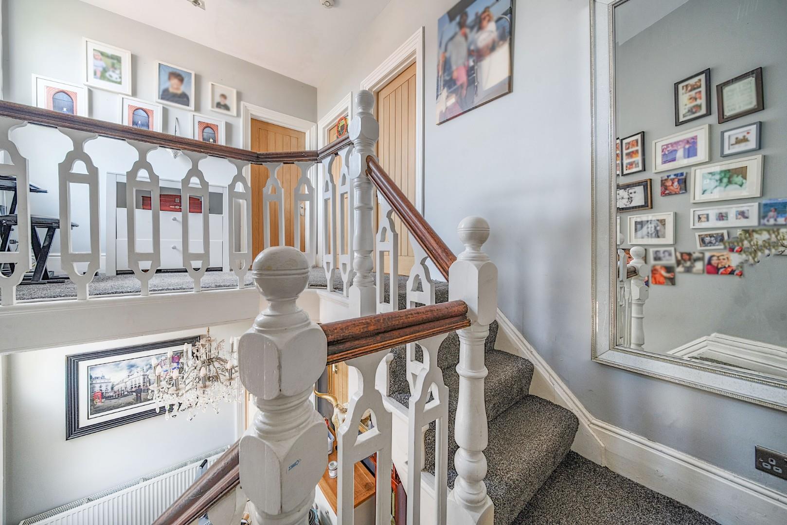 Moving upstairs, you will find three generously sized double bedrooms, ensuring ample space for rest and relaxation. The four-piece family bathroom is well-appointed, catering to all your needs. Furthermore, a boarded loft room serves as an excellent office space, ideal for those who work from home or require additional storage.