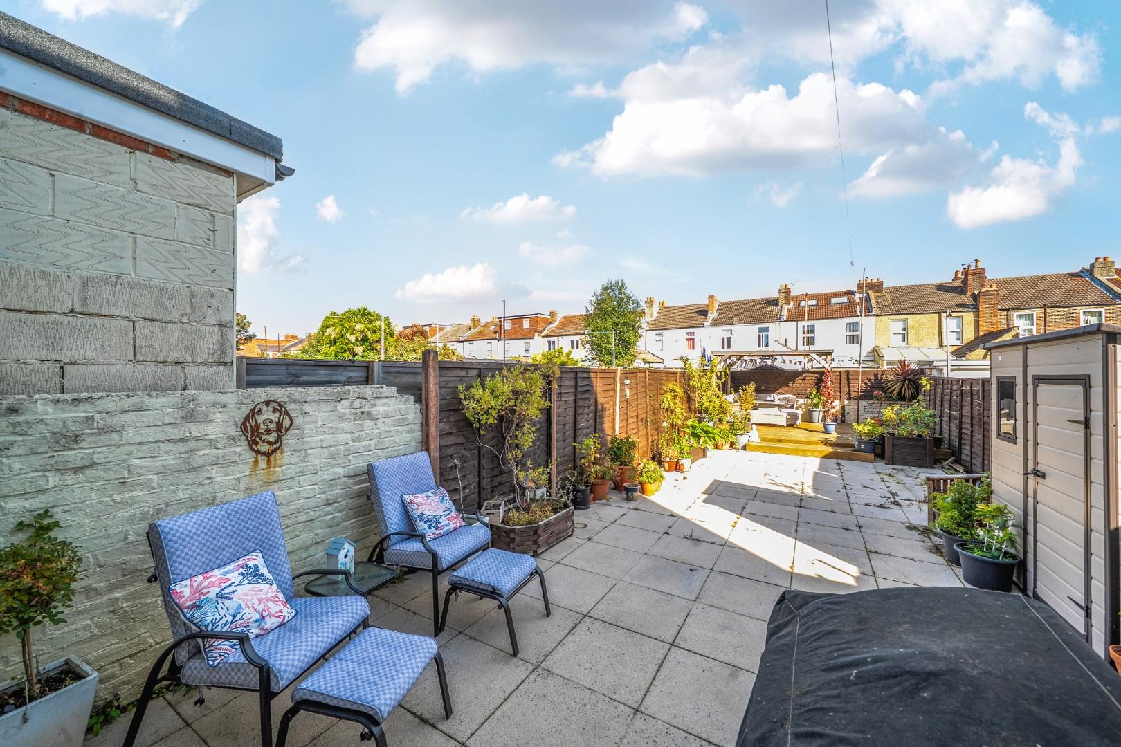 The outdoor space is equally appealing, with a generously sized garden that serves as a delightful sun trap. The garden is laid to patio, providing an excellent area for outdoor dining and entertaining, while a raised decking area at the bottom adds an extra touch of charm.