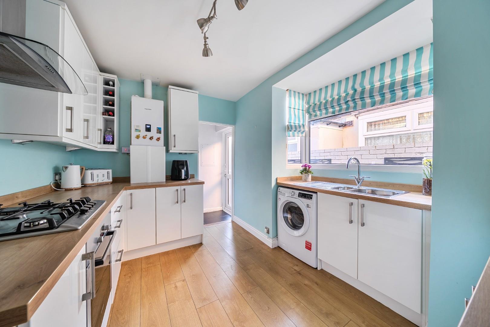 Moving towards the rear, the property has a four-piece bathroom suite, which is accessed through the kitchen at the rear. The modern fitted kitchen benefits from plenty of cupboard space and is flooded with light from the bay window to the side.