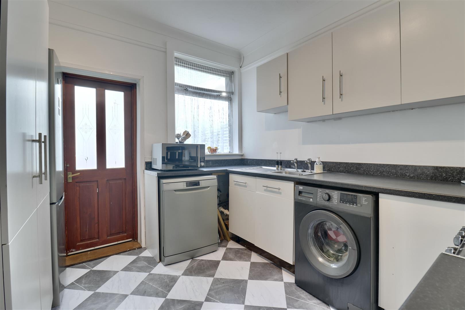 The well-appointed kitchen is a practical hub, providing access to a bright conservatory. This inviting area boasts patio doors that open directly into a low-maintenance garden, ideal for enjoying the outdoors without the burden of extensive upkeep.