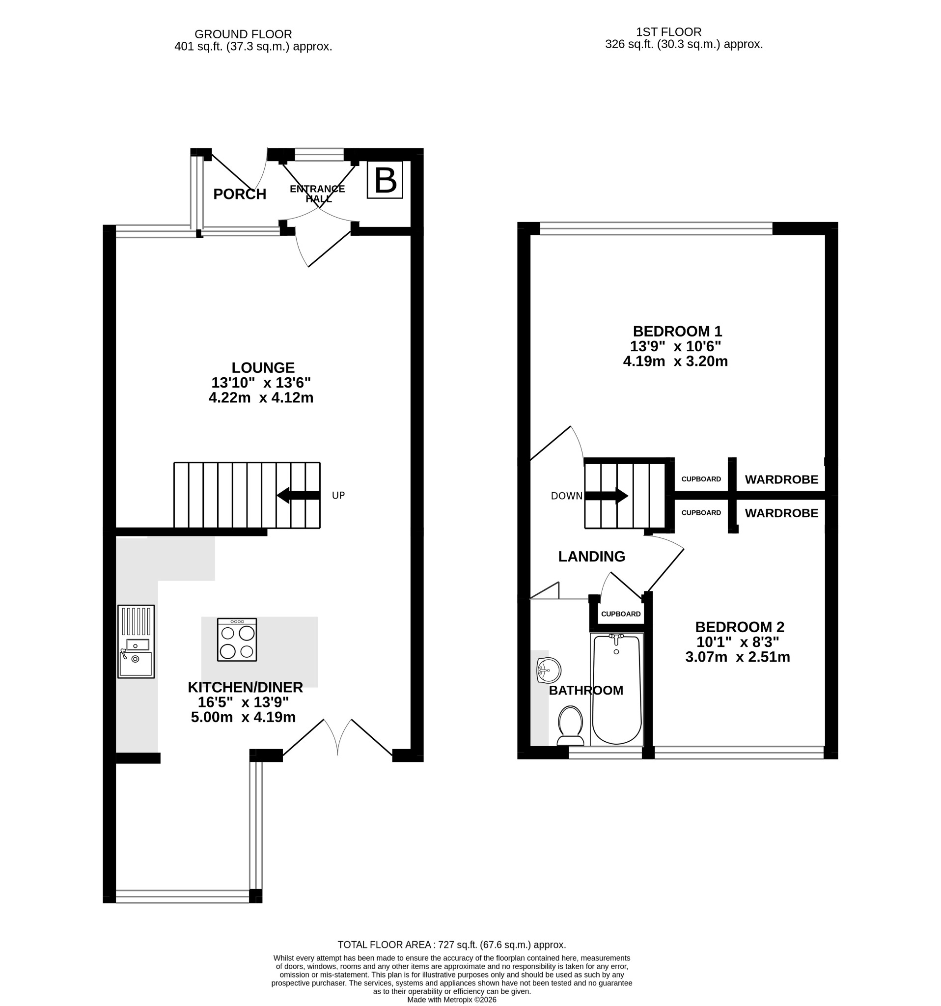 Door leading to the lounge. High-level double glazed window to the front aspect. Storage cupboard with wall mounted 'Baxi' combination boiler.