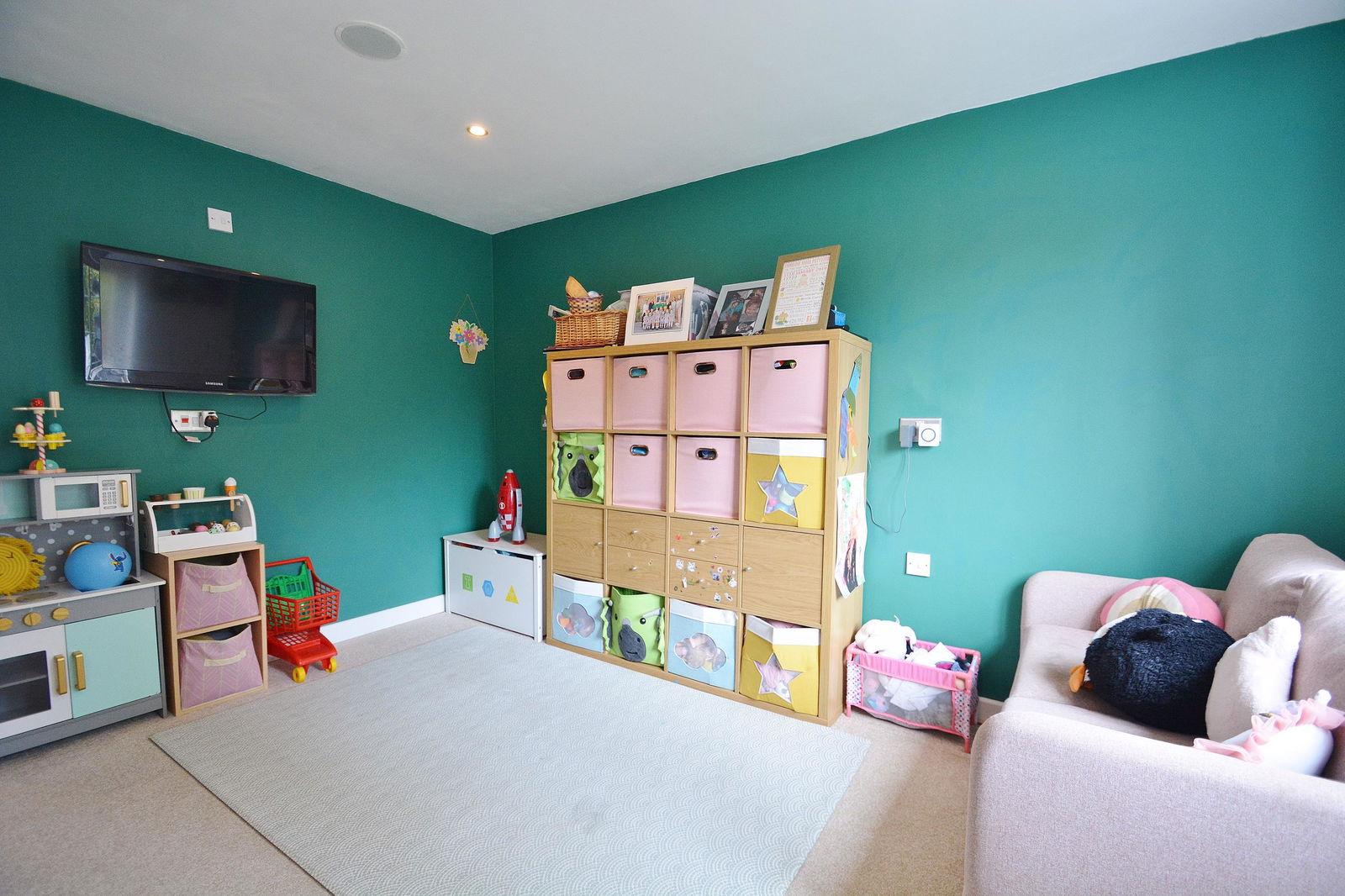 The home boasts two reception rooms: a large living room semi-open plan to the kitchen breakfast room, and a smaller front lounge, currently used as a children's playroom.