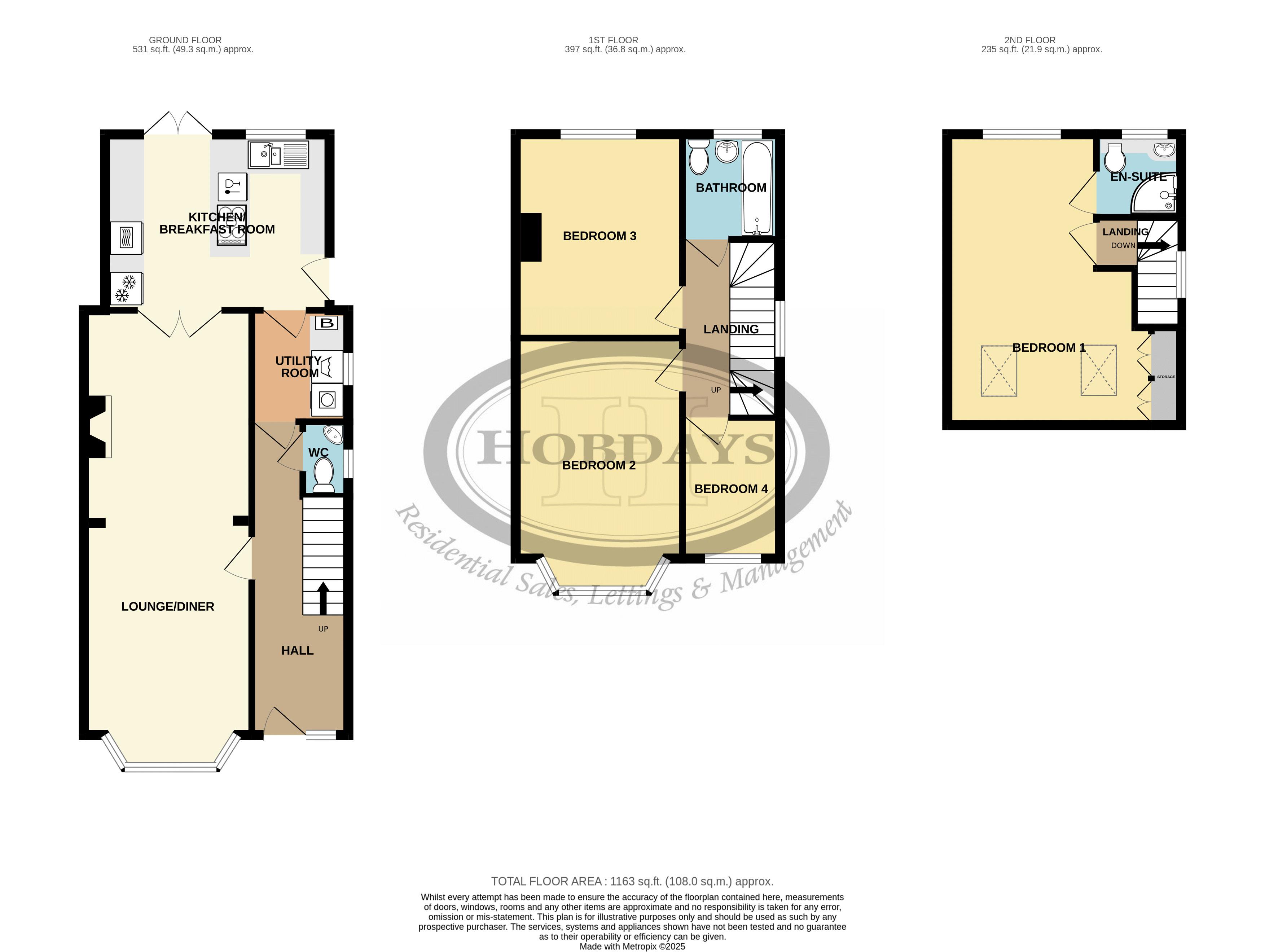 Whilst all reasonable care has been taken in the preparation of these details, their accuracy is NOT guaranteed. All measurements are approximate and the descriptions are for general purposes only (A laser measure has been used). None of the statements contained in these particulars are to be relied upon as statements or representations of fact. Hobdays has not tested any apparatus, equipment, fixtures, fittings or services relating to this property and therefore cannot verify that they are in working order or fit for the purpose. Prospective purchasers are strongly advised to satisfy themselves, by inspection or otherwise, as to the correctness of any statement herein and to take appropriate precautions to check anything which may be critical to their interest in the property. All pictures are taken with the aid of a wide angled lens. Items shown are not necessarily included. *Tenure of the property has not been checked, therefore this need to be verified by the buyers solicitor.