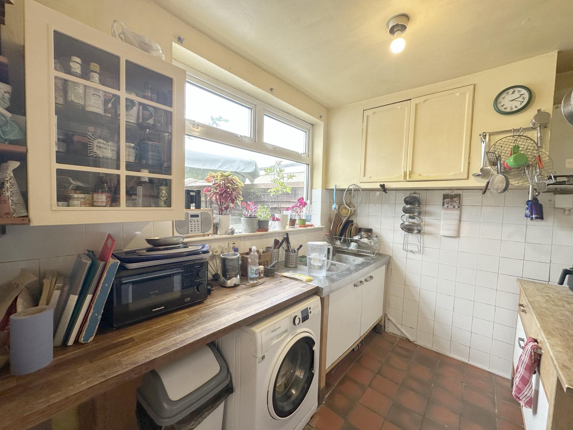 Double glazed window to the rear. wall and base cupboards, single sink unit, space and plumbed for washing machine, space for a free-standing cooker.