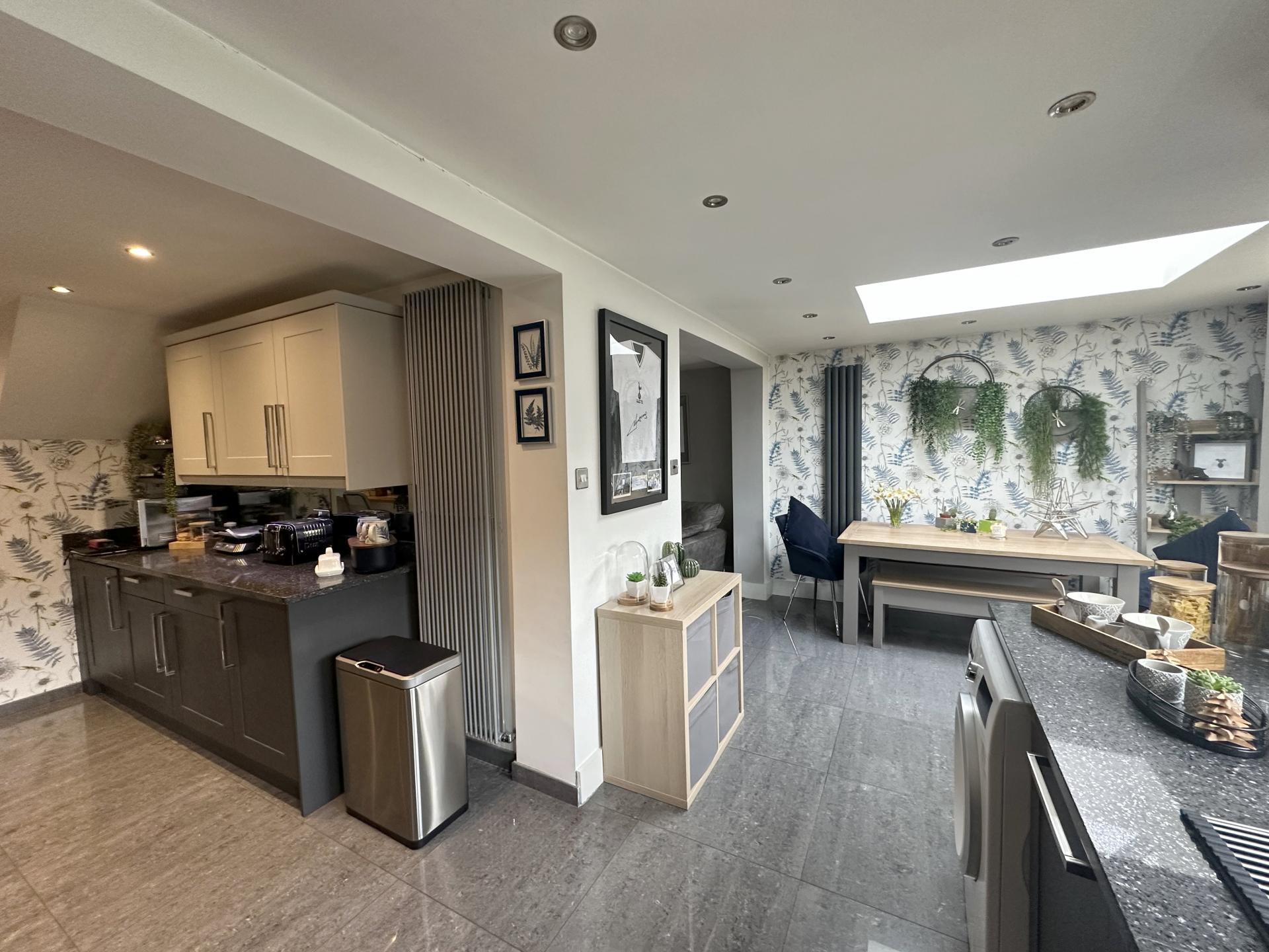 - Kitchen/Dining room opening to the Lounge