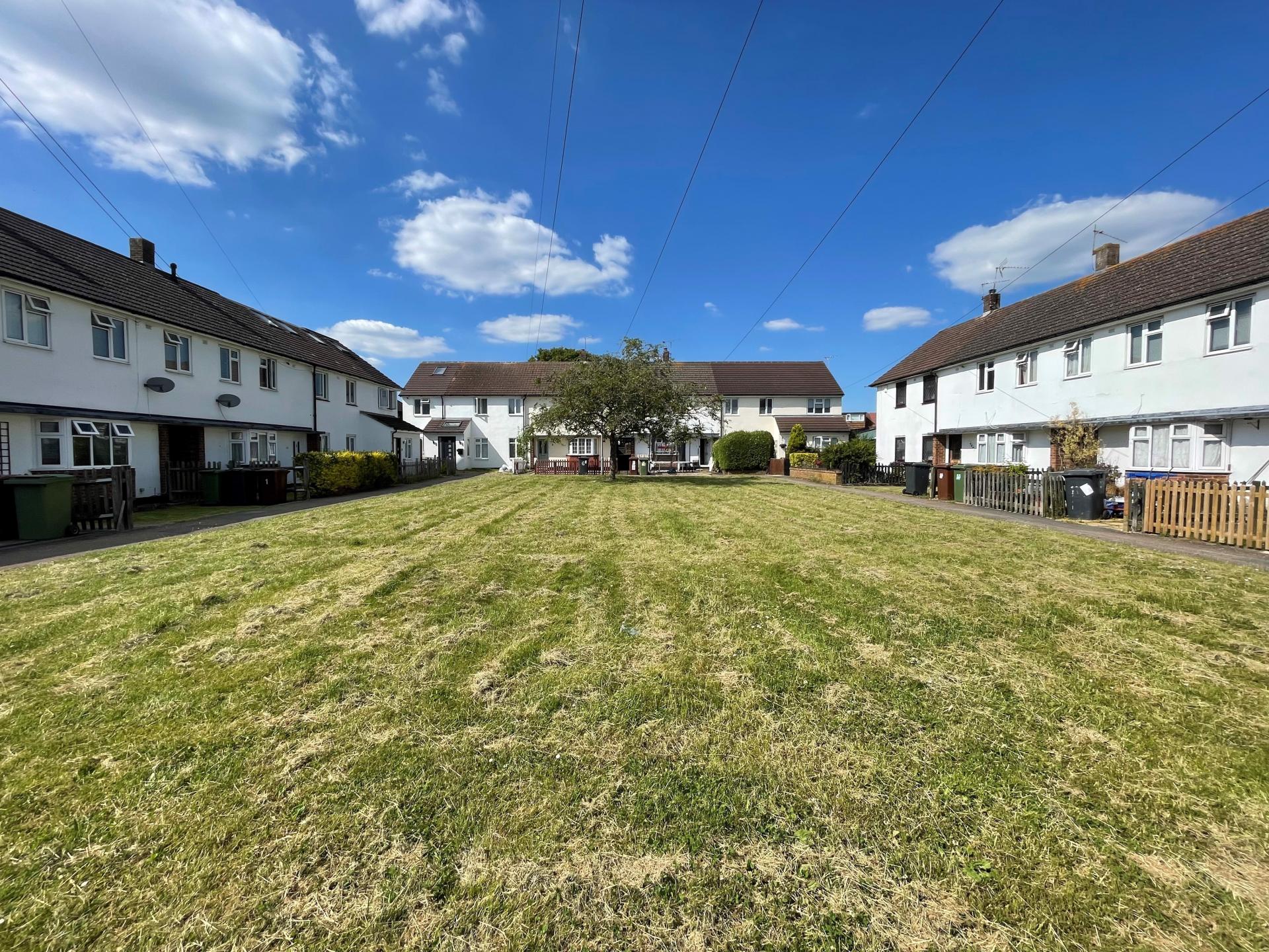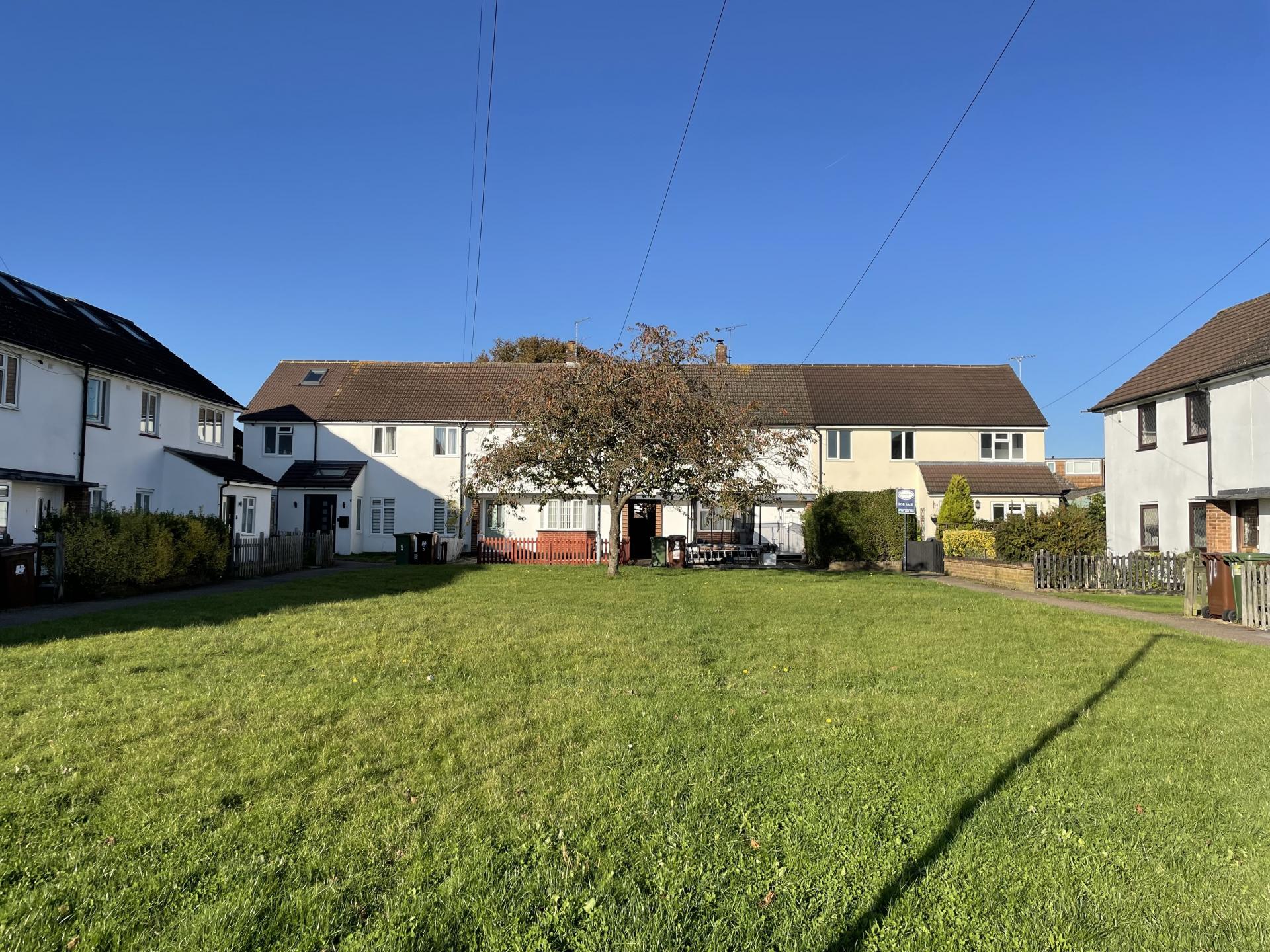 There is a communal green space to the front of the houses in the cul-de-sac as well as parking bays.