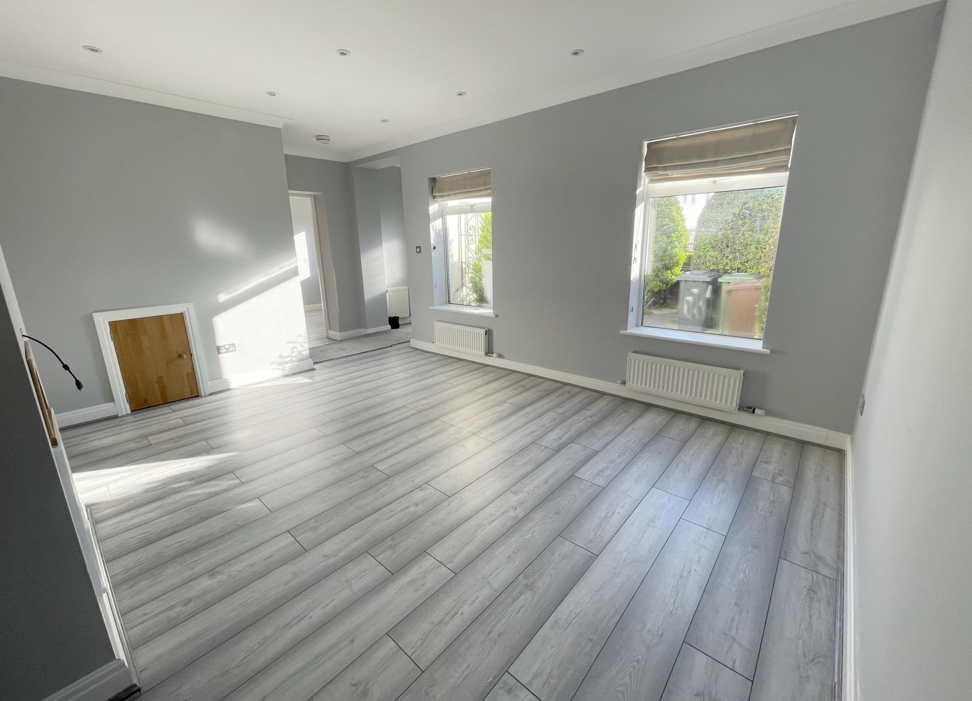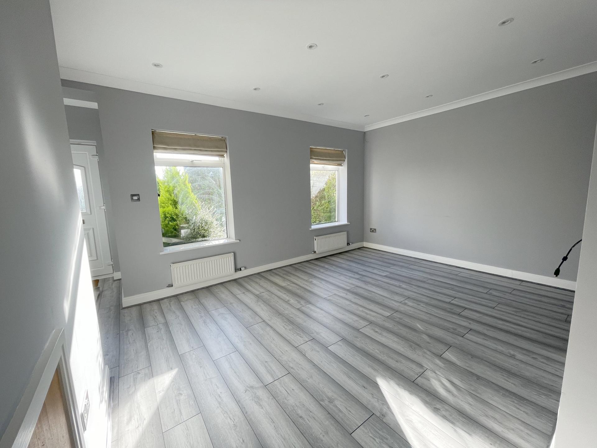 Two double glazed windows to front, coved ceiling, recessed spotlighting, two radiators, understairs storage area, stairs leading to loft room
