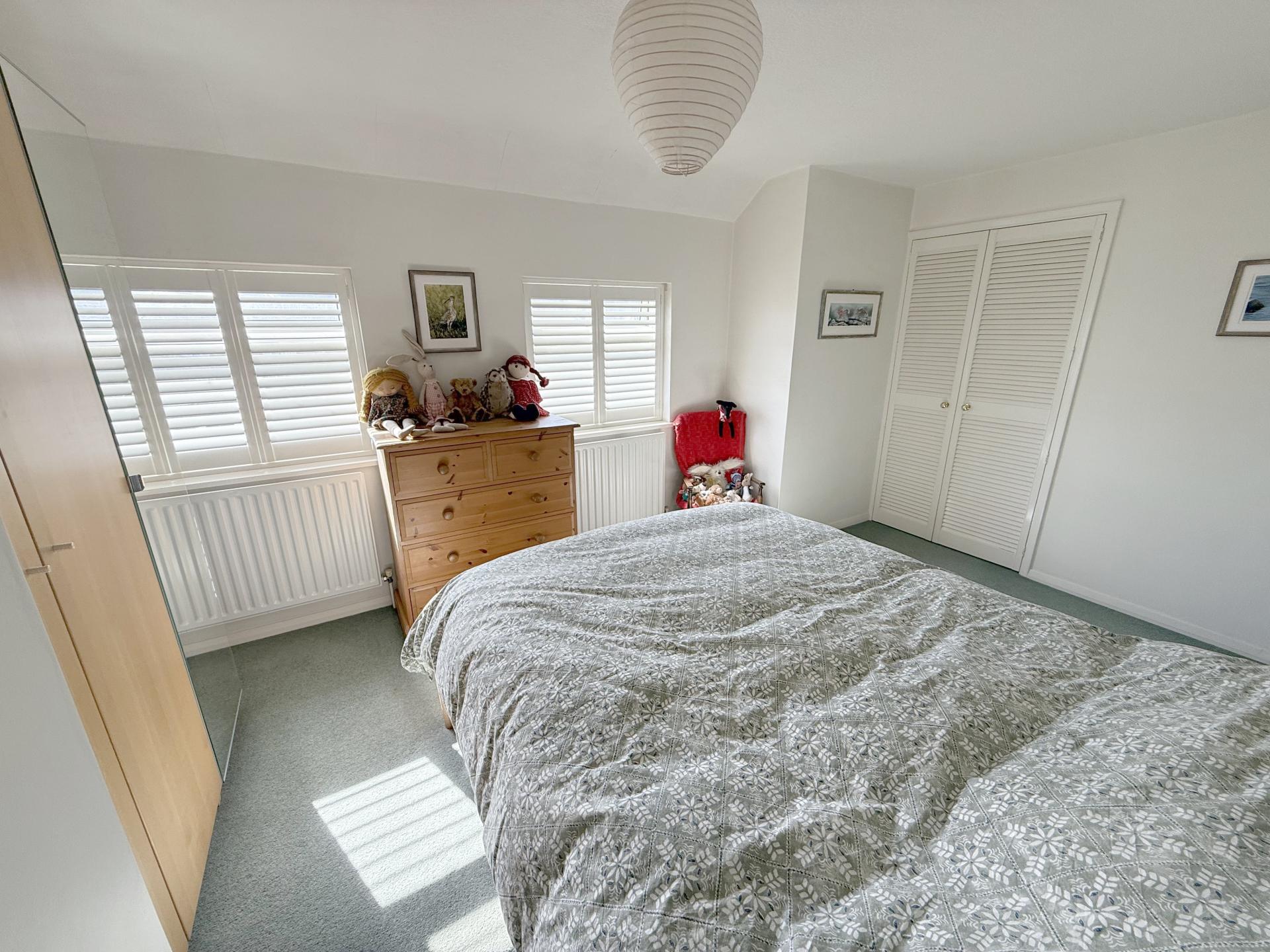 Two double glazed windows to front with fitted shutters, two radiators, built in wardrobe with radiator, additional storage cupboard.