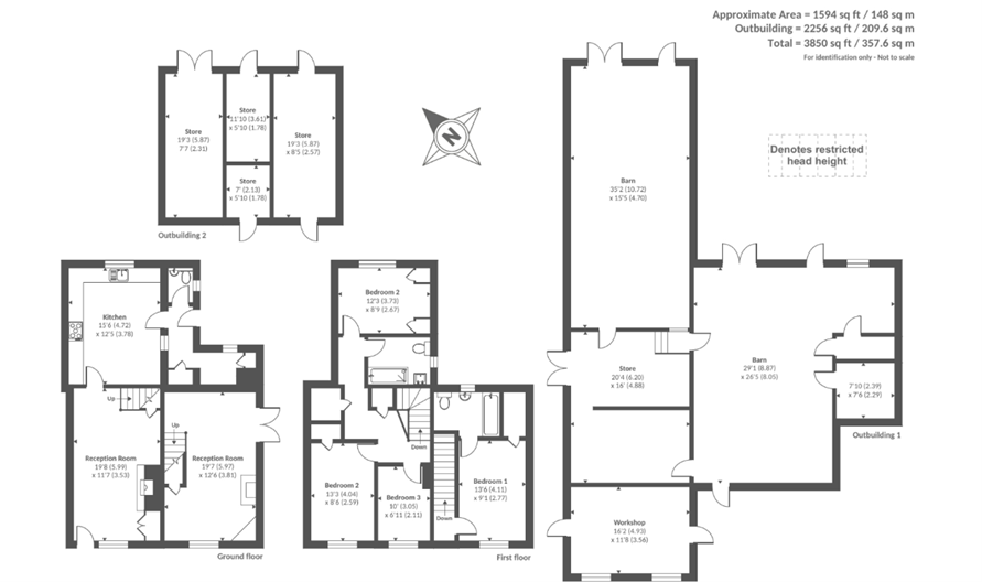 Upstairs, the main house offers three generously sized bedrooms, each enjoying picturesque views of the rural landscape. A well-appointed family bathroom completes the first floor.