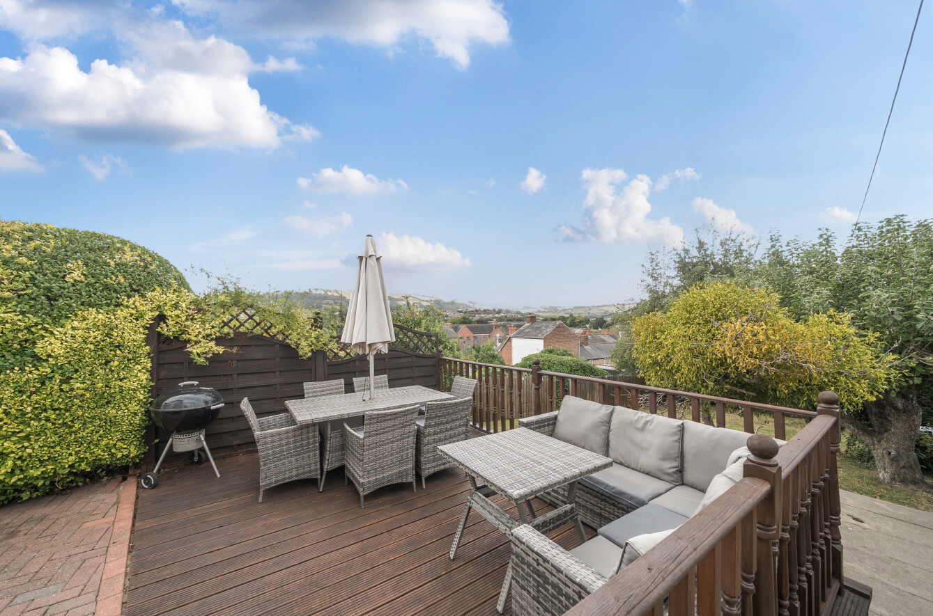 - Sizable lawned garden, raised decking, patio, Summerhouse, vegetable patch & greenhouse