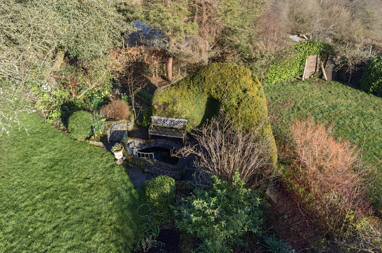 - Productive gardens with vegetable patch, fruit bushes, and pond