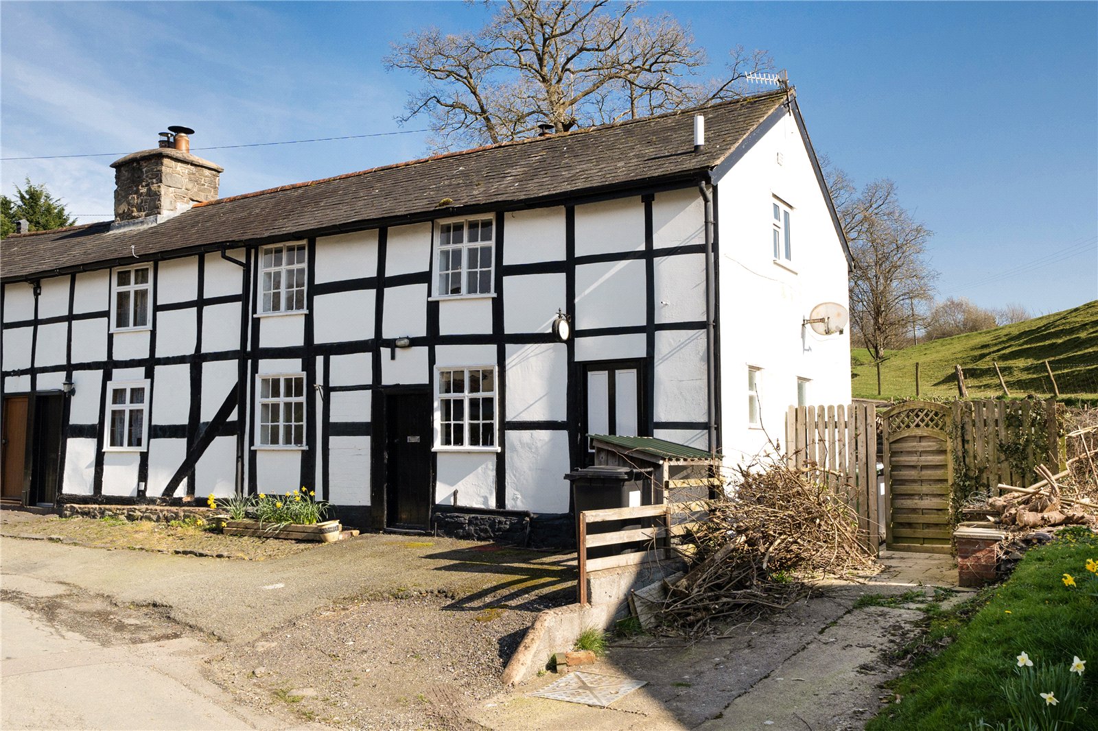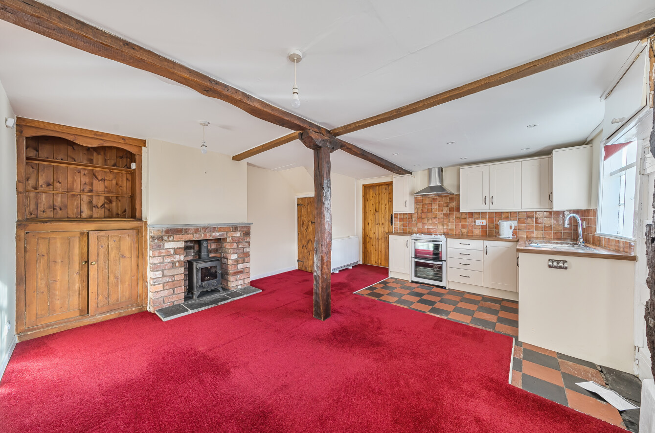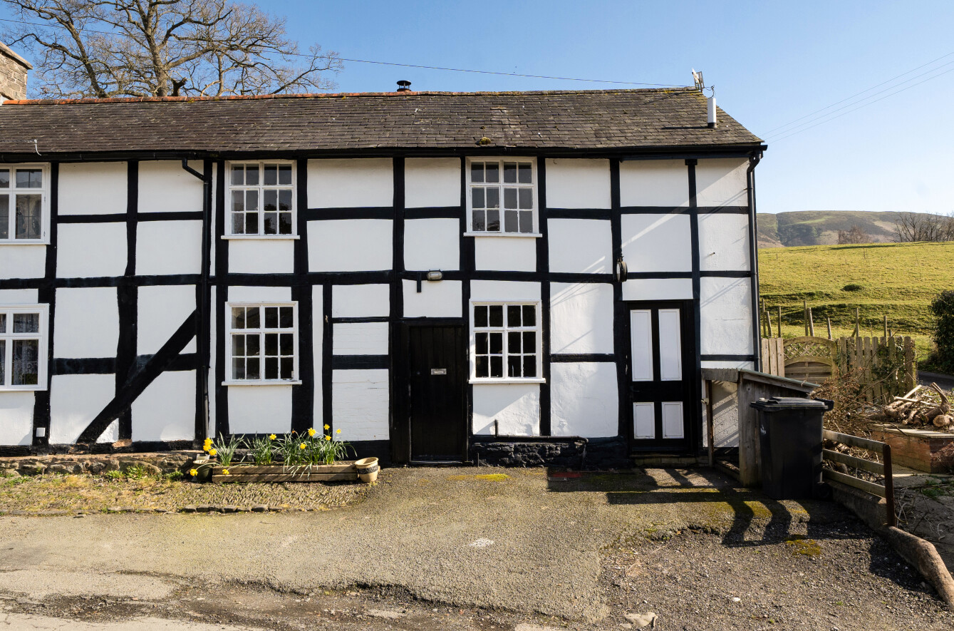 - The property is built of half timbered walls, rendered and stone under a slated roof
