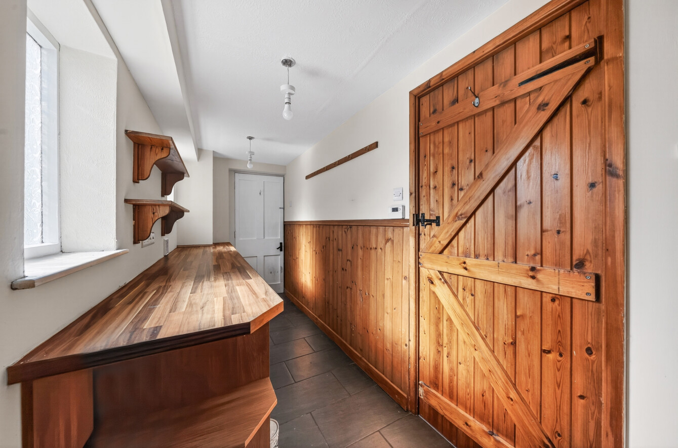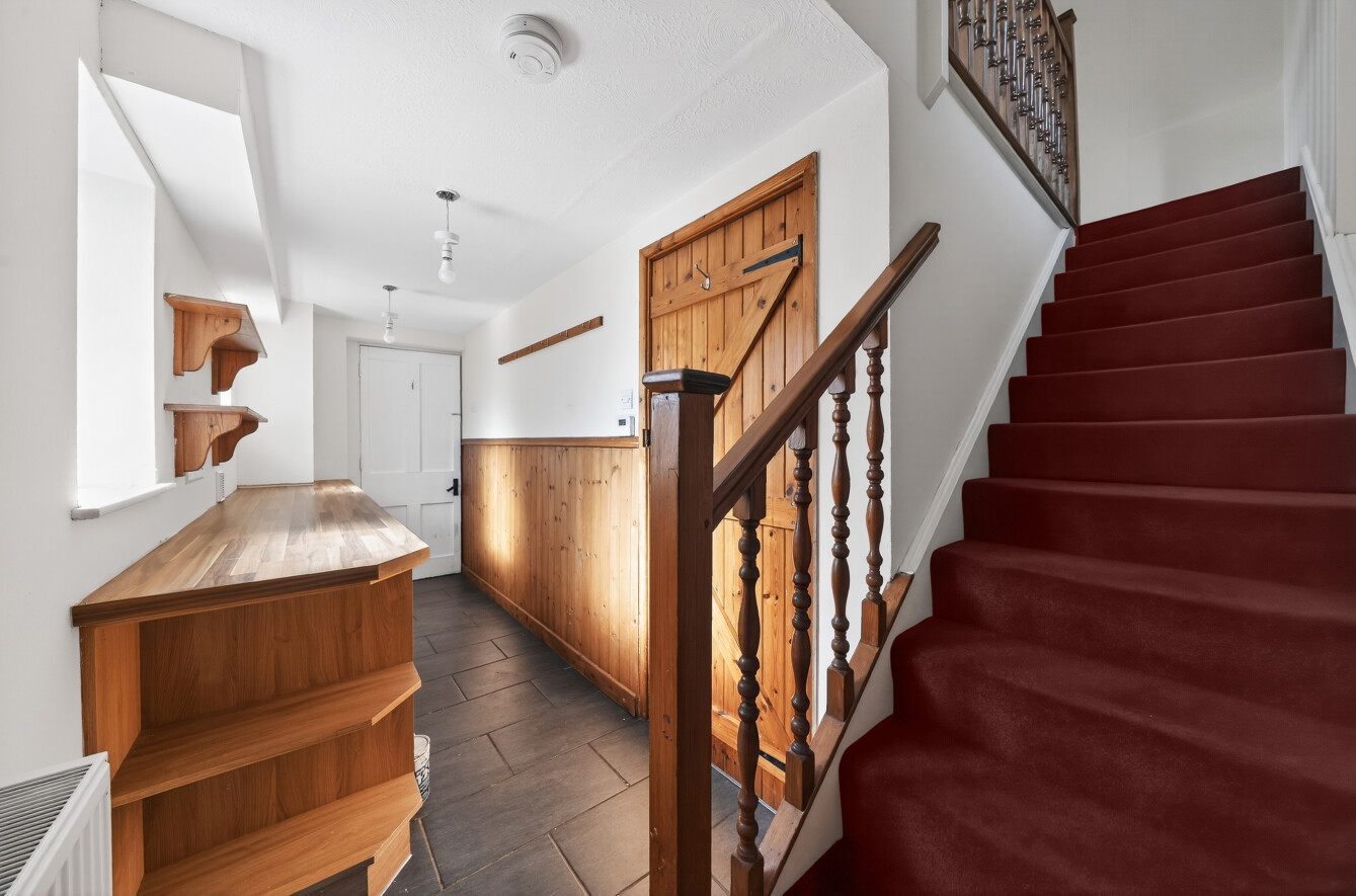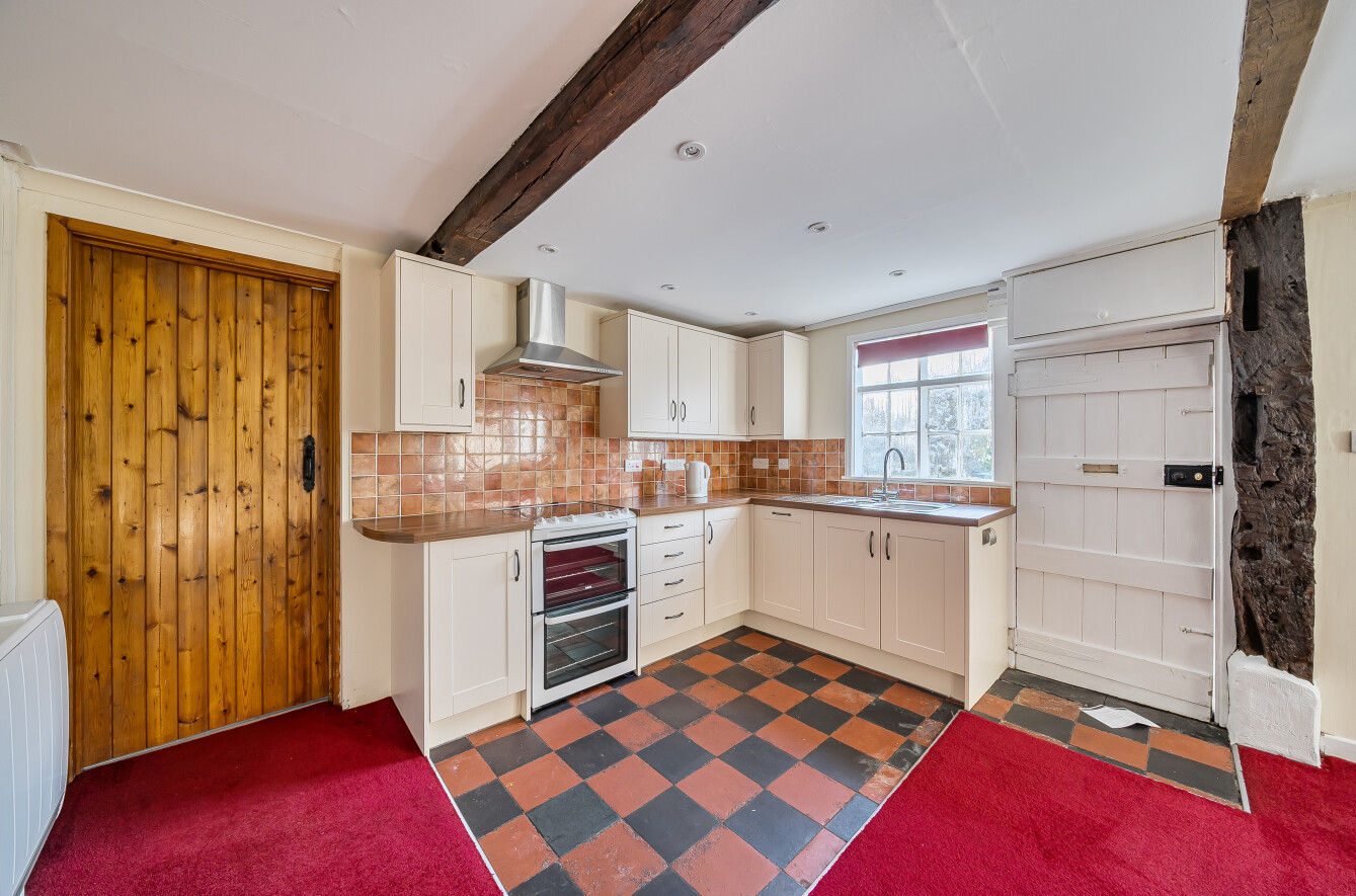 - The property is built of half timbered walls, rendered and stone under a slated roof