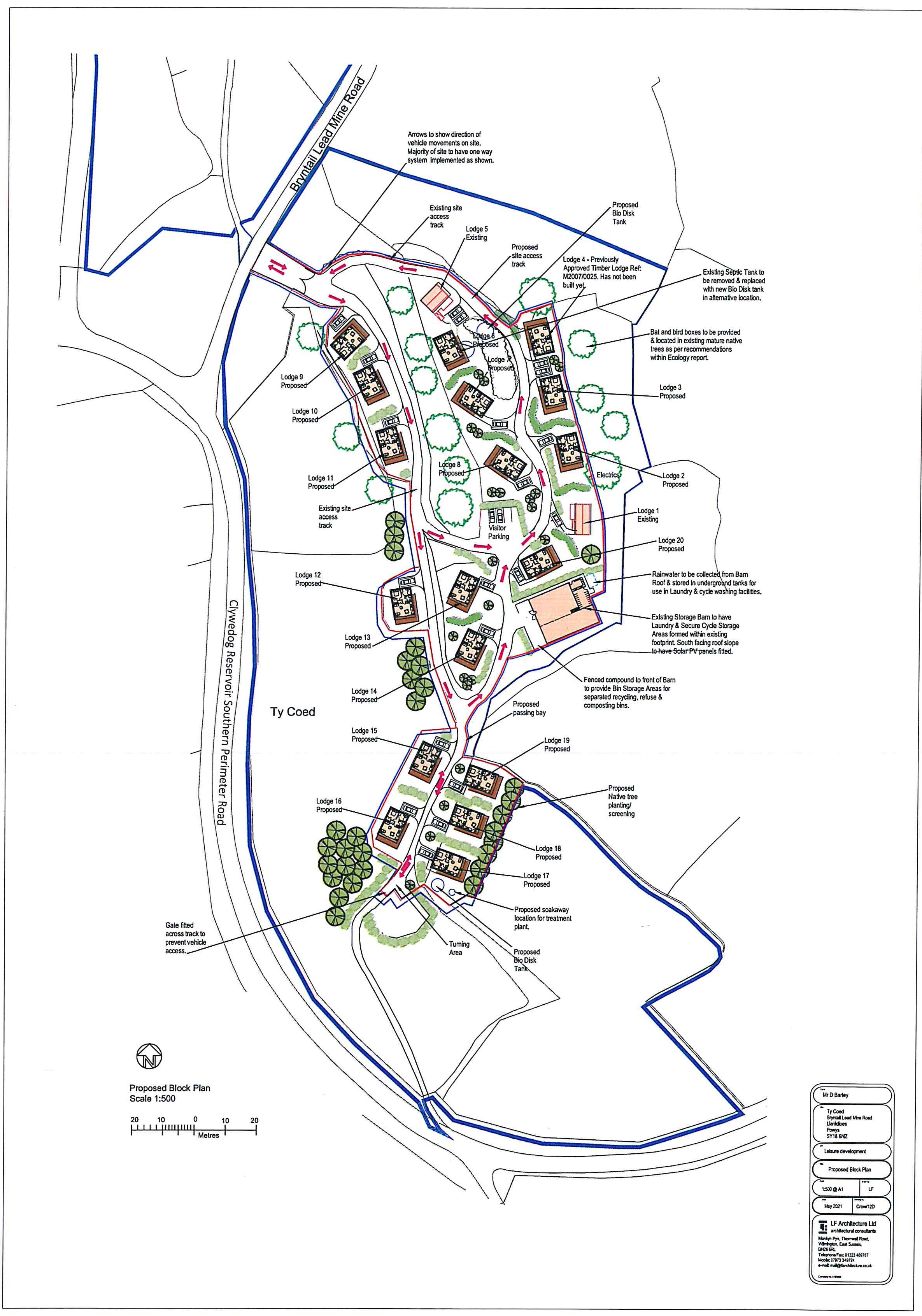 Full planning permission was further granted on the 4th November 2021 for the 'Siting of 17 holiday accommodation units; alterations and changes of use to existing barn to provide a storage and laundry facility; installation of a treatment plant and all associated works at Ty Coed, Bryntail Lead Mine Road, Crowlwm, Y Fan, Llanidloes' (Application No 21/1231/FUL. Copies of the planning permissions and plans are available from the agents office. A layout plan is attached to the particulars. A copy of the proposed chalet accommodation is also attached to the particulars. Potential purchasers can make their own alterations and enquiries with the local planning authority (Powys County Council) if they wish to alter the plans, subject to approvals etc. We understand that there was a previous application that lapsed which was for a rural dwelling, interested parties to make their own enquiries to see if this would be possible and again subject to pursuing the necessary approvals and consents.