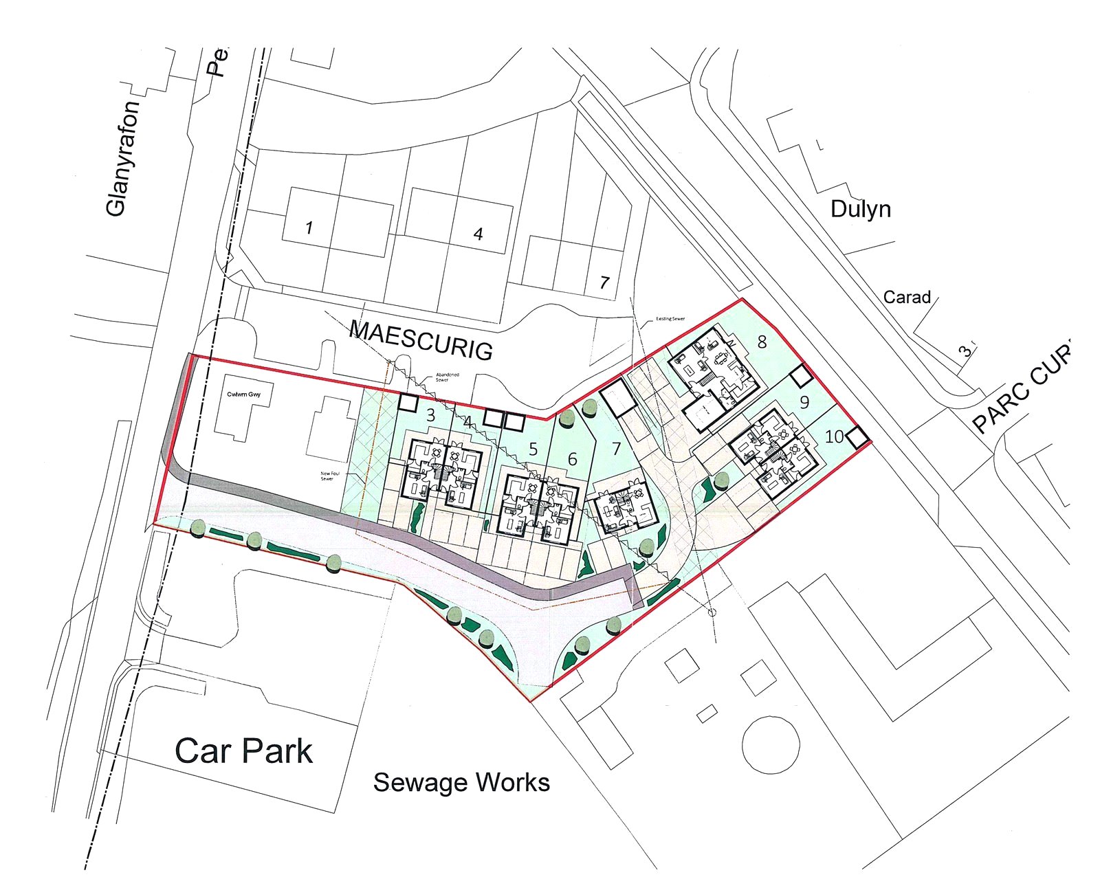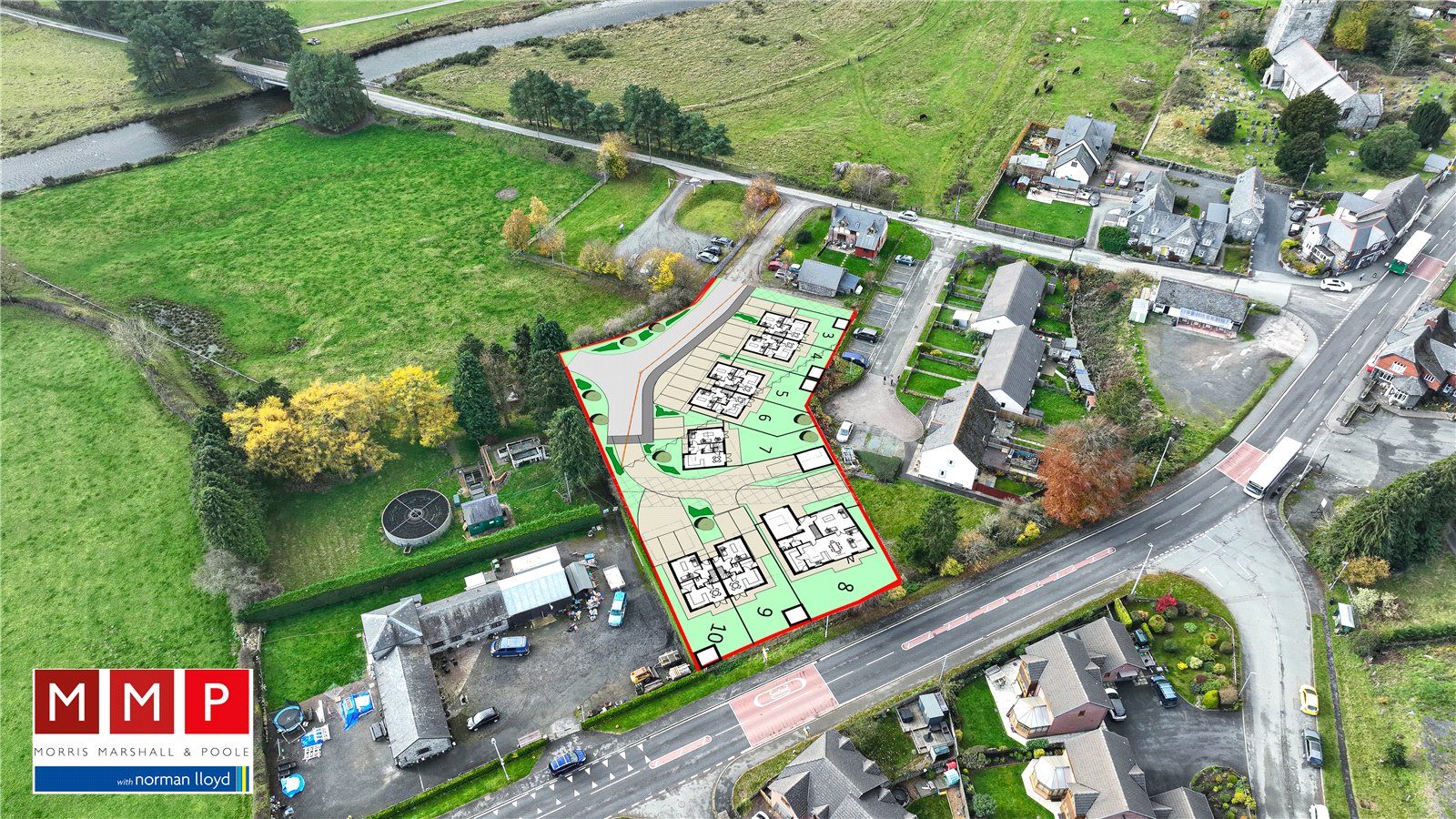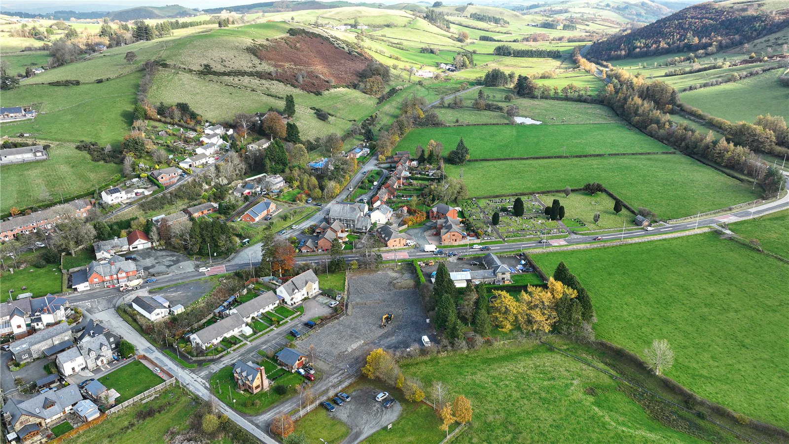 A new development by Whitestone Building Solutions who are building 8 new dwellings in the village of Llangurig. Traditionally built the site will contain 6 semi detached dwellings, a 3-bed detached dwelling and a 4-bed detached dwelling.