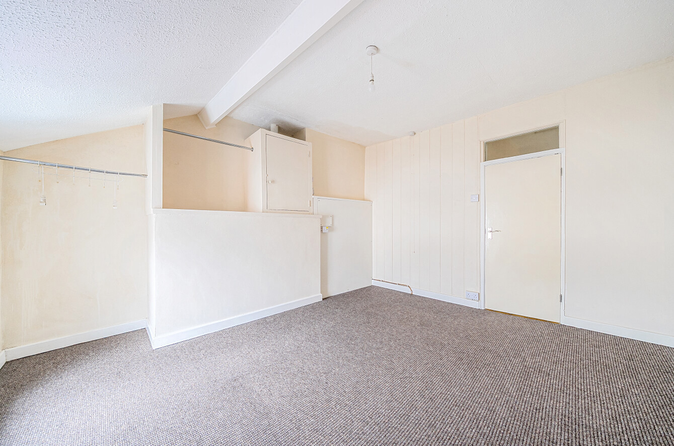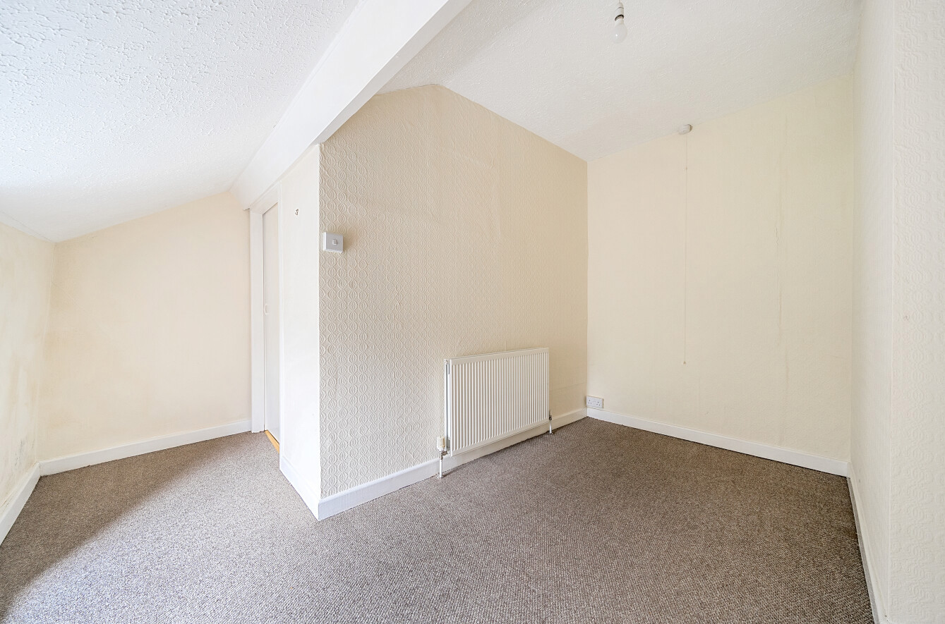 L-shaped Rear Bedroom 2 (11'5 x 12' max) with limited headroom, window to rear and radiator.