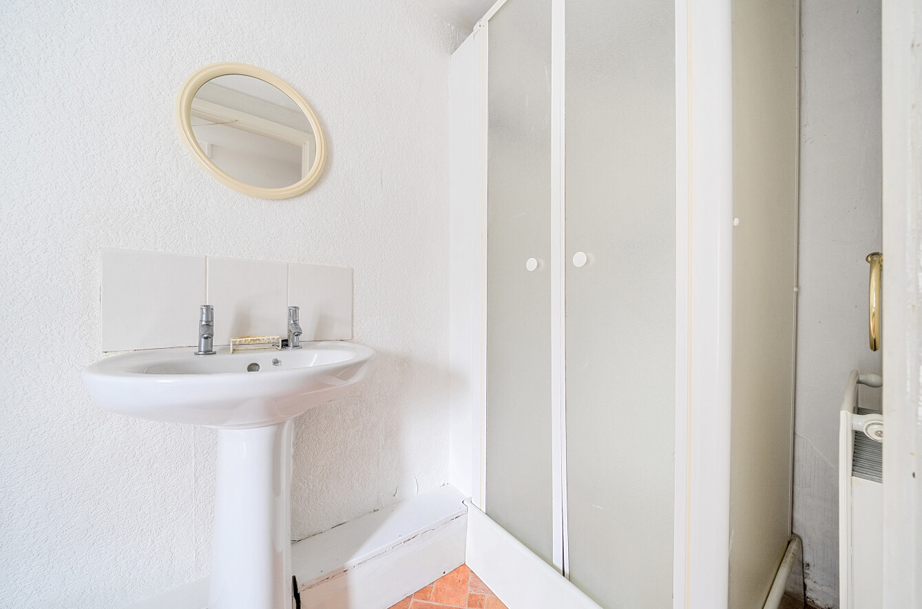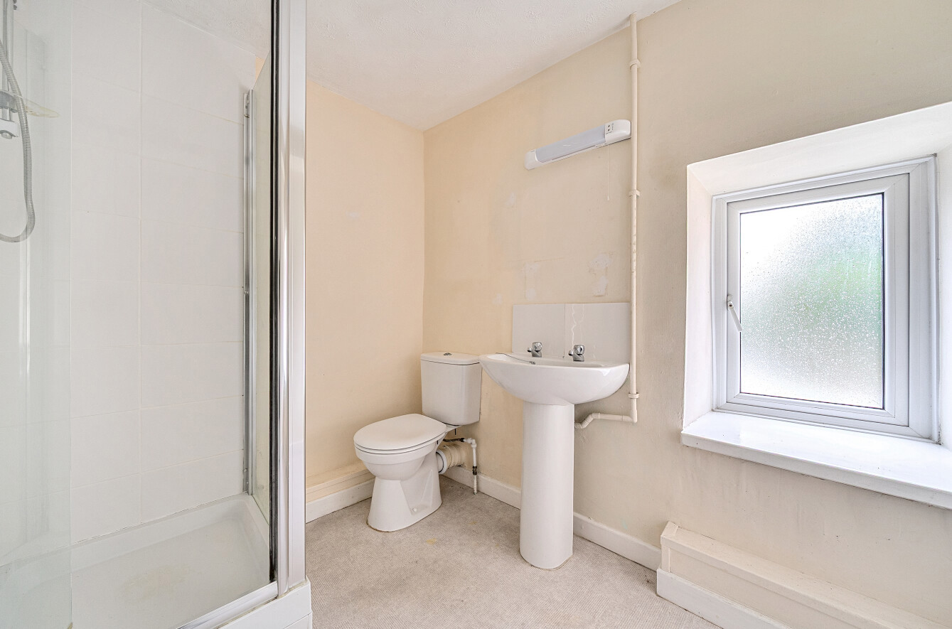Shower Room (6'2 x 7') comprising pedestal wash hand basin, WC, shower cubicle with electric shower over.