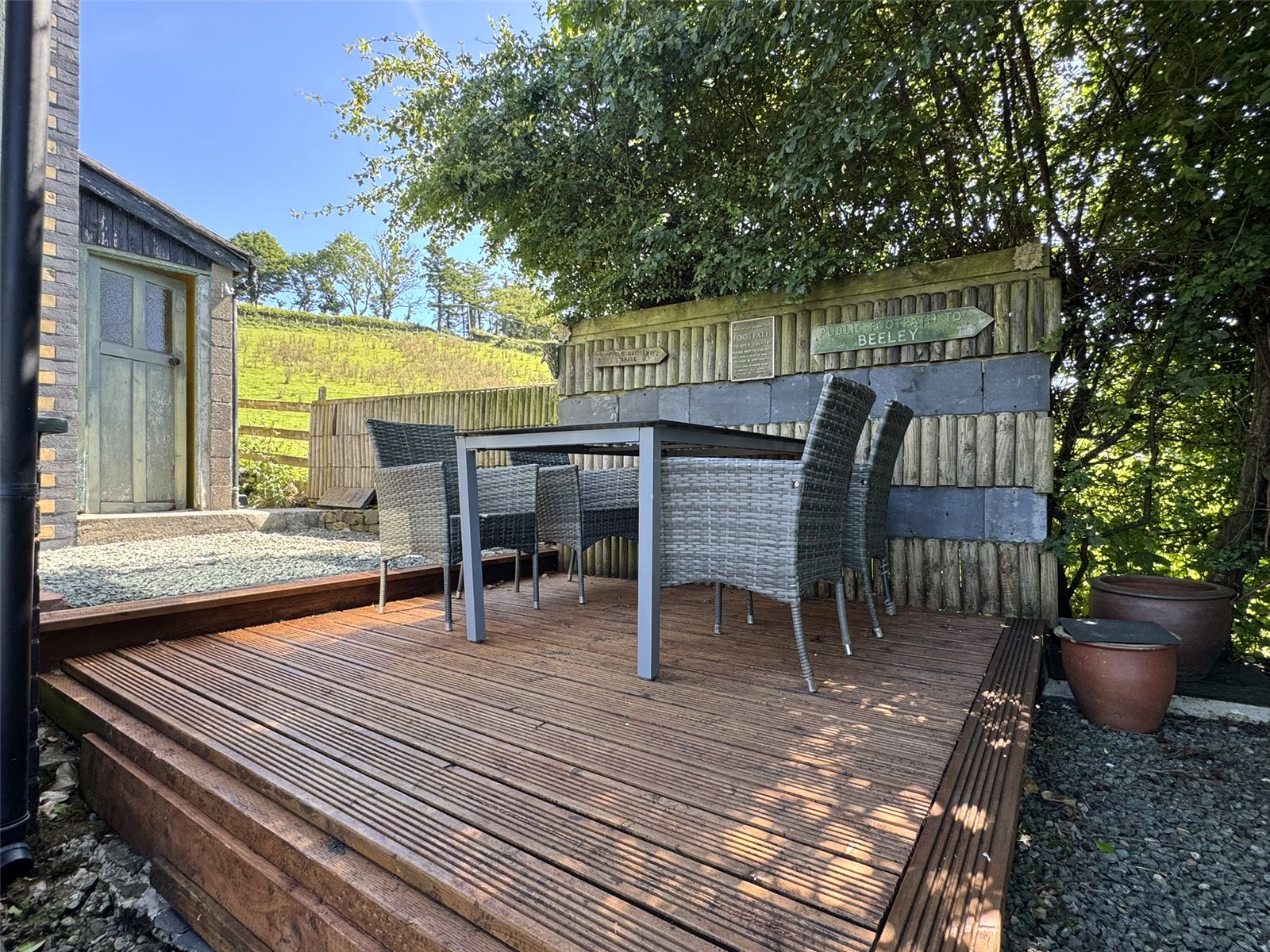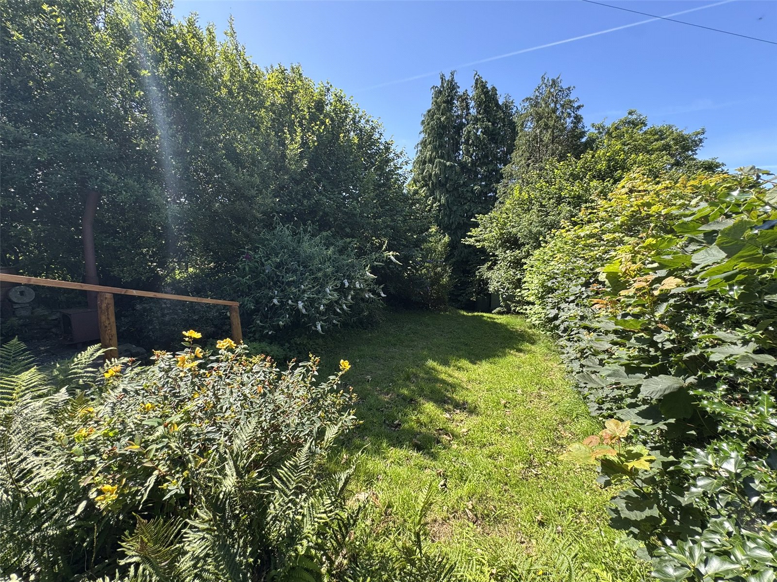 To the side of the outbuildings is vehicular access to the paddock beyond. To the rear of the outbuilding is an enclosed lawn area with panoramic views of the Dyfi Valley, a seating area and Verandah fully enjoy the scenic outlook. The Paddock is situated to the rea of the outbuildings, fully enclosed with a water supply and spanning approximately 2 acres. To the rear of the property, a gravelled seating area with far reaching views across the valley below. Steps lead down from here to a private lawned area.