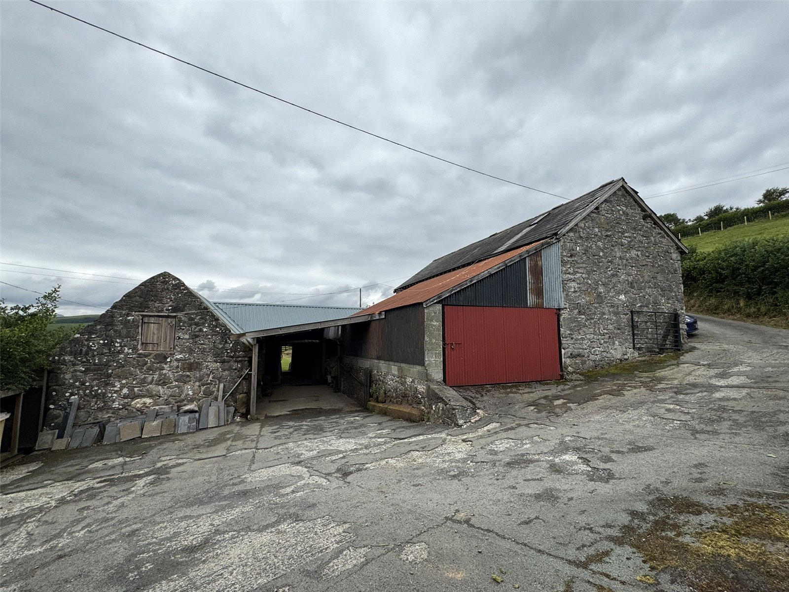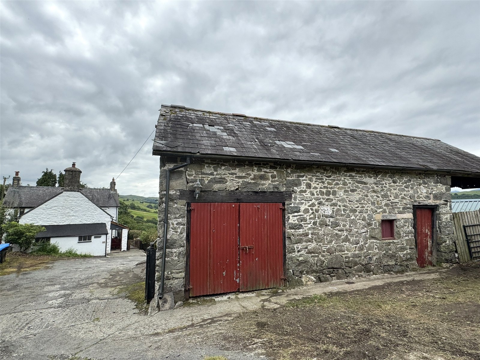 The property is approached via a private driveway opening out to a large turning and parking area. Beyond is a covered car port area with power and lights, providing a garage workshop space and additional parking. From here there is access to Barn 1 and Workshop, both of which have power and lights and provide dry and secure storage spaces having been re-roofed approximately 10 years ago. Behind the Car Port sits Barn 2, a large space with several bays, currently used for storage. A car opening gives access onto the adjoining paddock. Large Garage sits to one side of the Car Port. complete with power and lights and benefitting from full width door to the front. Beside this, Barn 2 and the Hayloft complete the range of stone built outbuildings. A large stone, 2-storey building with 2 Loose Boxes to the ground floor and boarded storage above offers excellent development potential, subject to relevant permissions. Planning permission has previously been granted for conversion of Barn 1 and Workshop but has now lapsed.