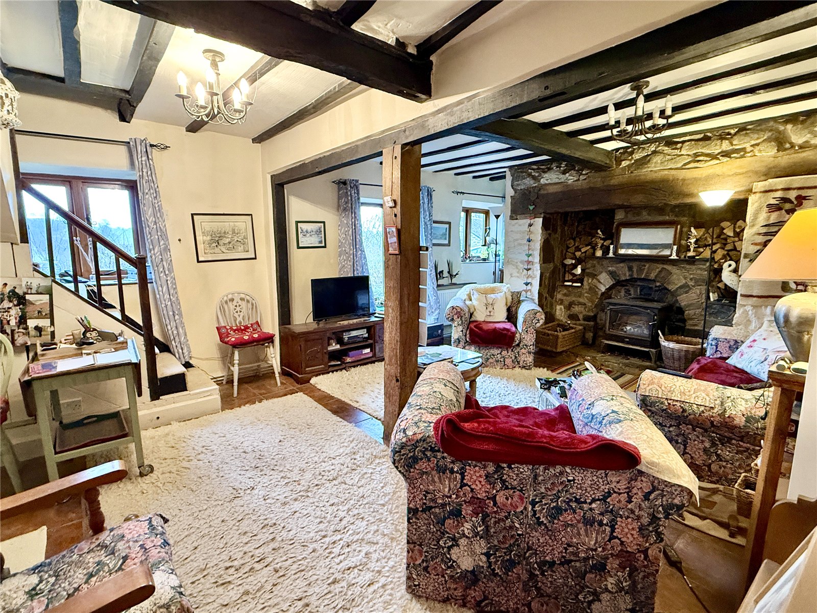 - Character features including exposed beams and Inglenook fireplace