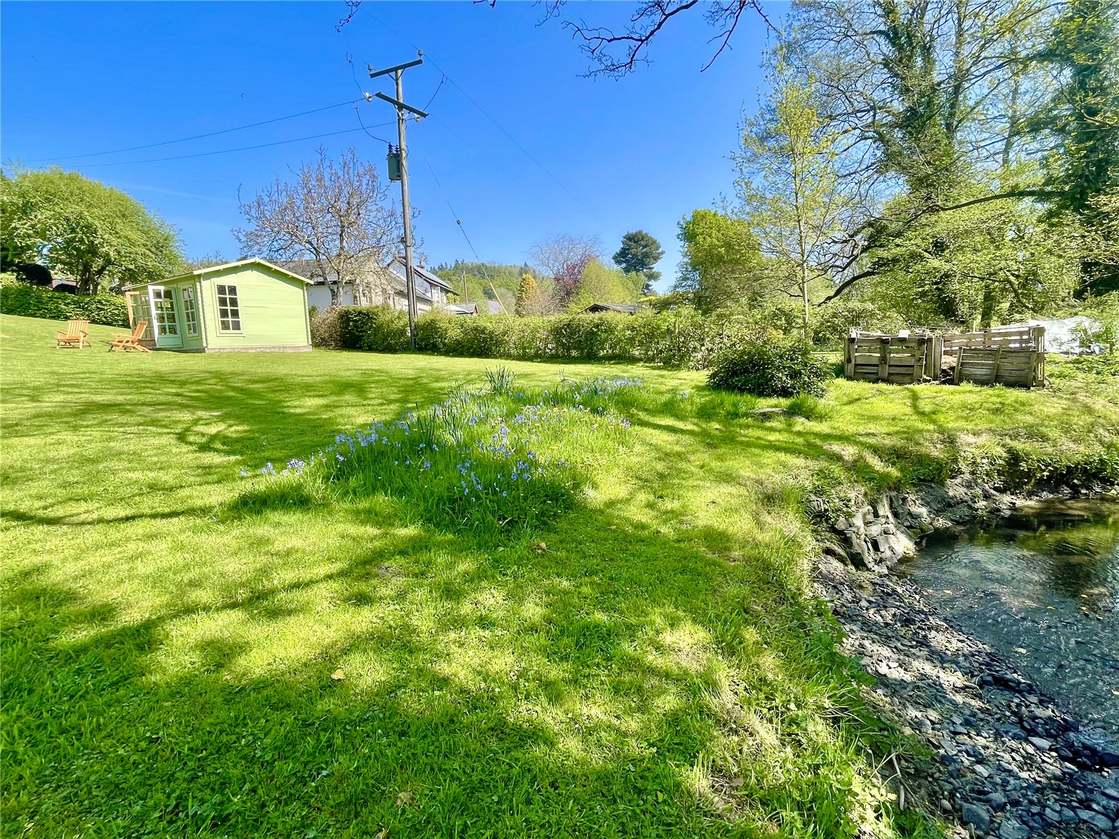 - Patio and garden grounds with summer house