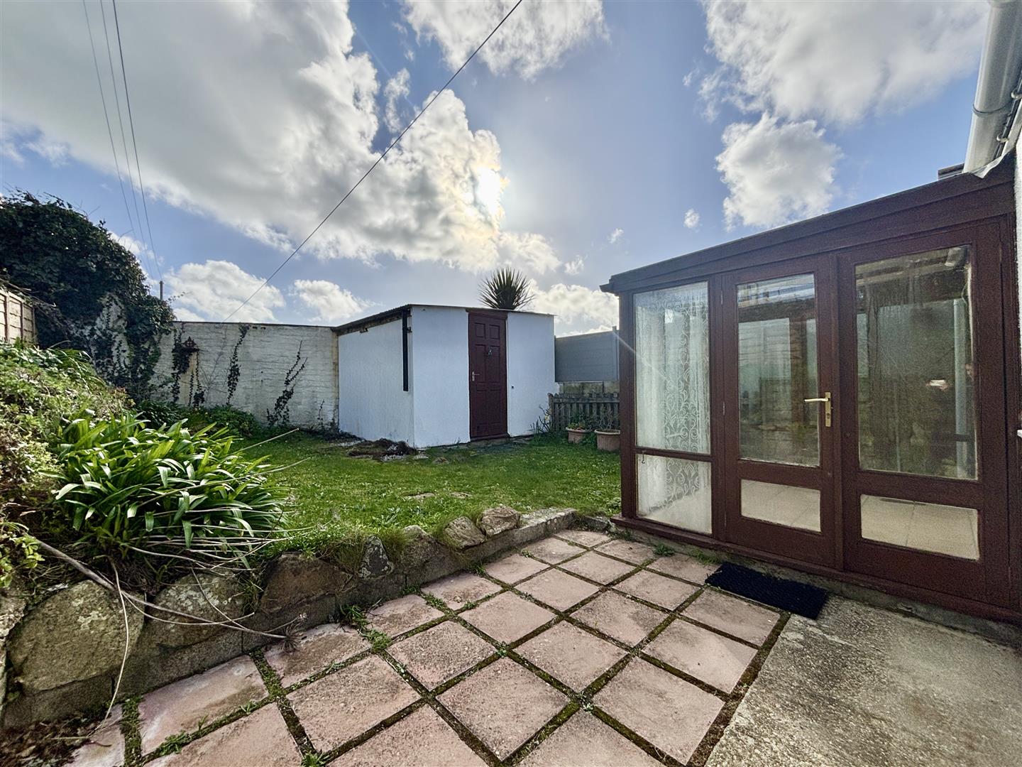 Outside - Arrive and park on the paved parking area at the front of the property. From here continue via the lawned front garden, along a path leading to the rear of the property. The front garden is laid to lawn with established trees and shrubs including two palm trees. The rear garden offers a secluded area with a patio seating area which, in turn, leads on to the lawned garden with established plants and flowers. There is a useful outhouse and a small greenhouse. As previously mentioned the garden enjoys a good degree of privacy and is a lovely place to sit and relax whilst listening to the waves rolling on to the shore.