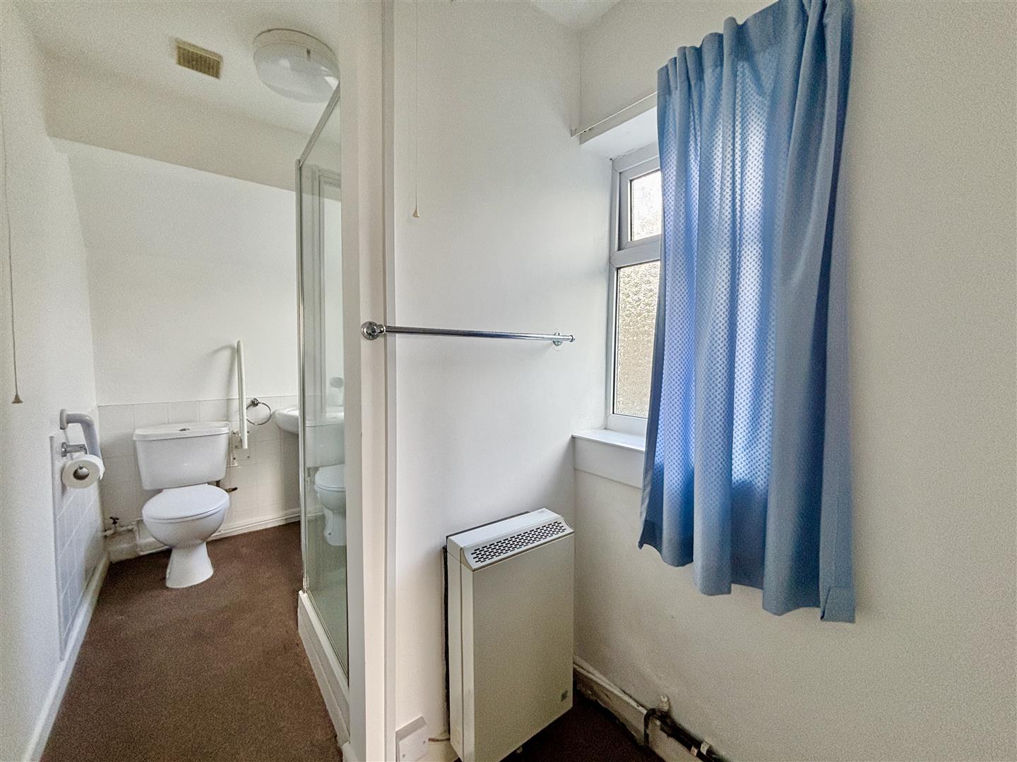 Shower Room - 3.38m x 1.50m (11'1" x 4'11" ) - With tiled cubicle housing Triton T80 electric shower, pedestal wash handbasin and W.C., and extractor. With obscured window to the side.