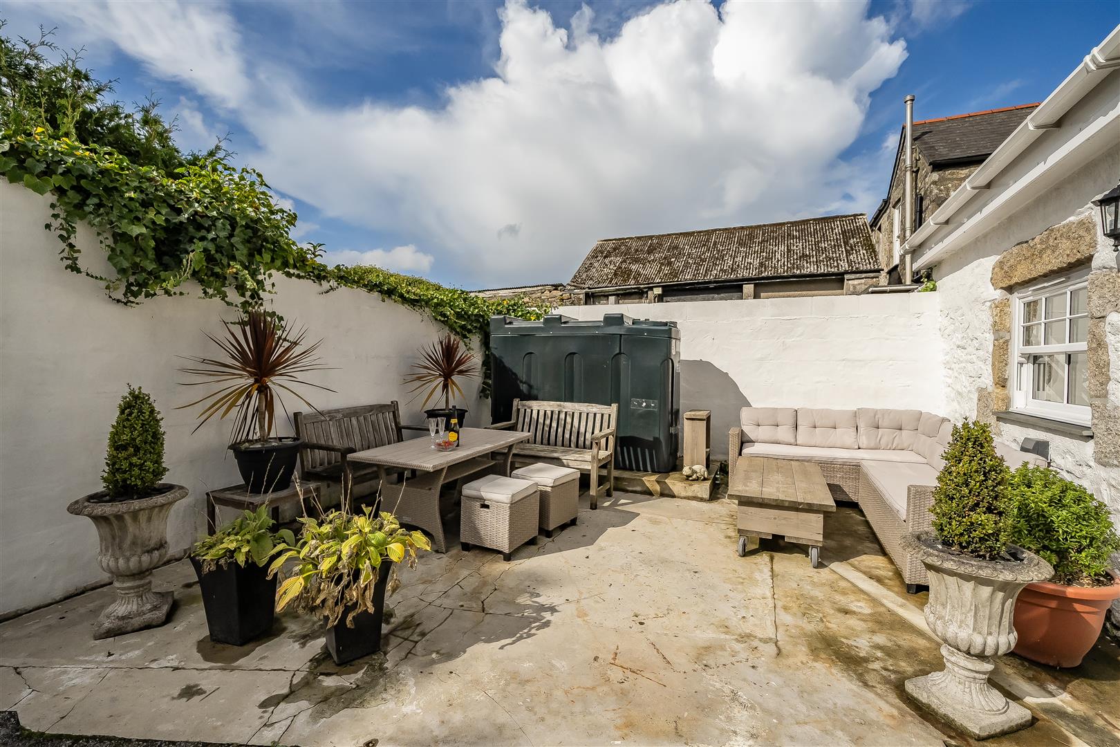 Outside - The Old Post Office enjoys an enclosed, low maintenance garden, perfectly designed for outdoor seating and relaxation. A raised stone edged planter adds a splash of colour and greenery, softening the space and providing an attractive focal point. Ideal for those seeking a private, easy care outdoor retreat.