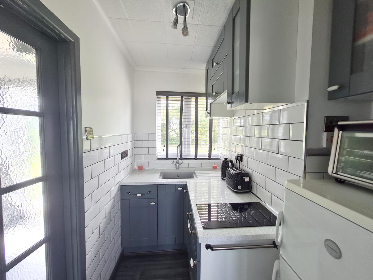 Kitchen - 2.06m x 1.30m (plus recess) (6'9 x 4'3 (plus reces - A modern and stylish fitted kitchen with contemporary quartz work surfaces, modern grey base units (one housing the water heater), a composite sink with quartz drainer area and swan's neck mixer tap over, attractive white 'metro' style tiled splashbacks and part tiling to walls, a 'Cooke & Lewis' integrated electric hob plate, space for a fridge freezer, attractive eye level cupboards with hinged cupboards over, spotlighting and a window to the rear aspect with a pleasant outlook.