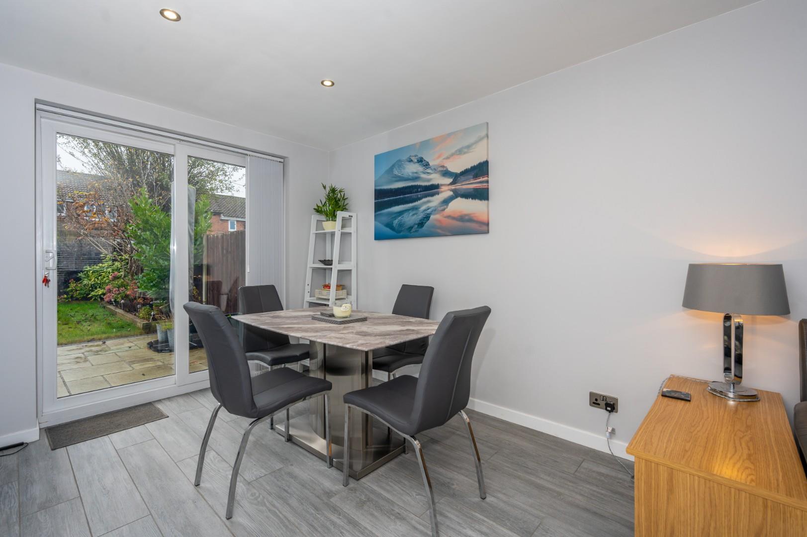In summary, the property features an entrance hall, an through living and dining space, and an extended kitchen area on the ground floor. Upstairs, you'll find two generously sized double bedrooms with built-in wardrobes and a family bathroom. Outside, the property boasts off-road parking for 2/3 cars at the front and a meticulously maintained garden with a patio area and outhouse for storage at the rear.