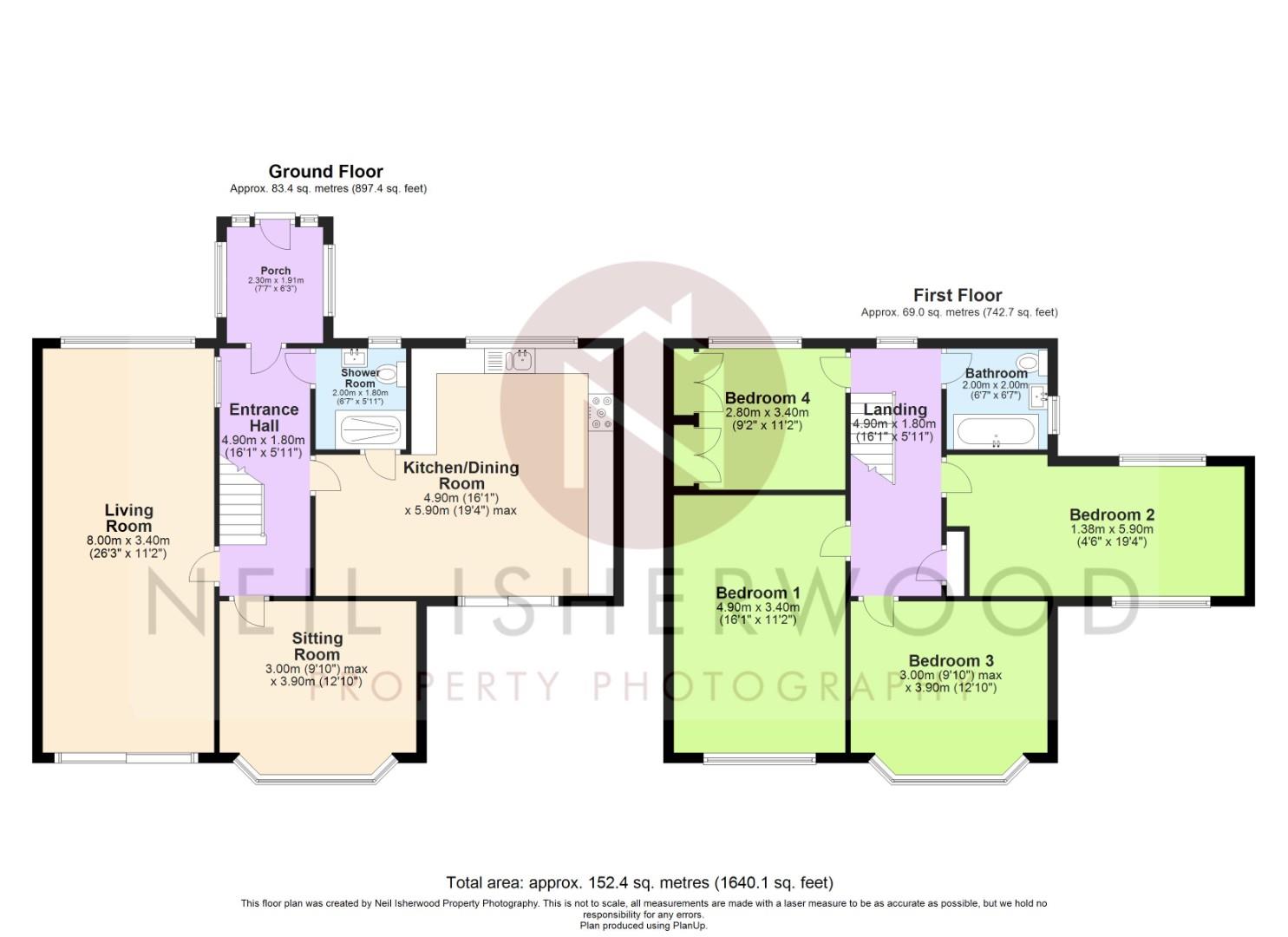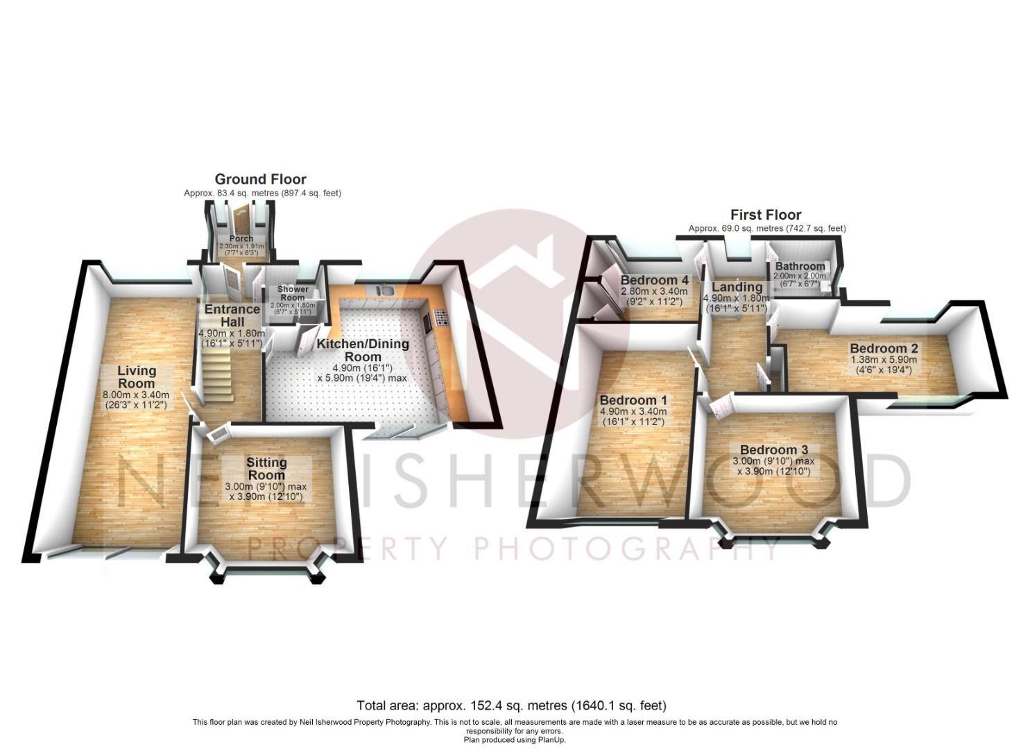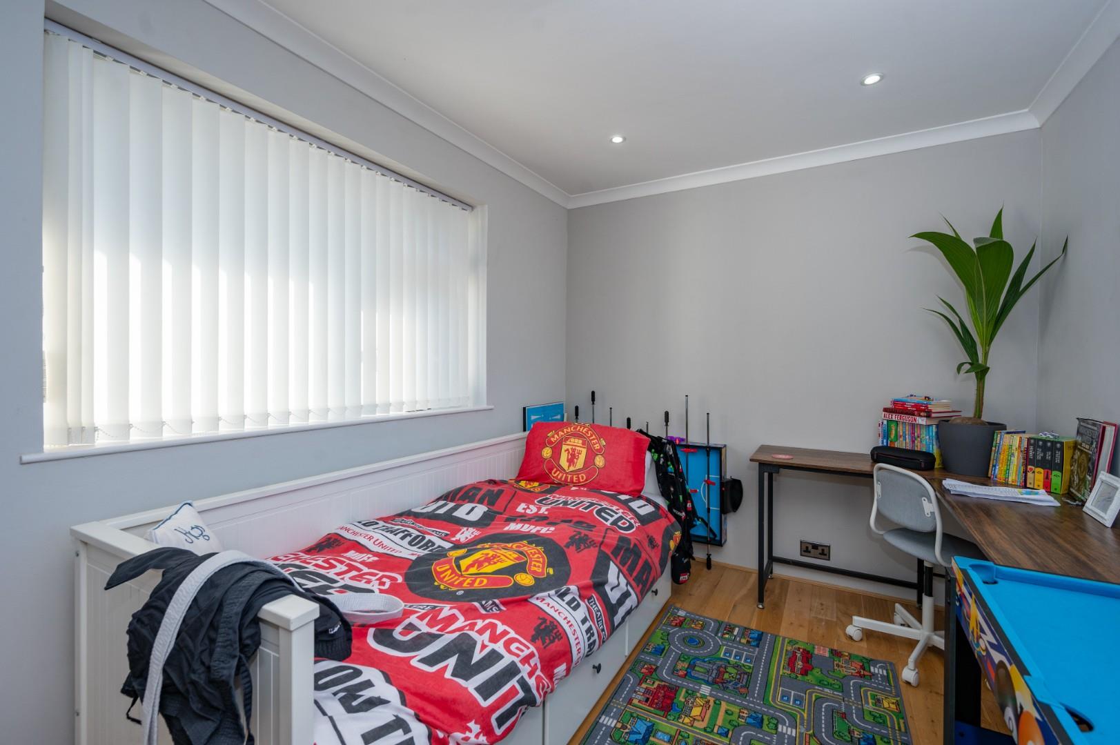 This spacious plot features an inviting driveway with ample parking space. The property comprises a porch, entrance hallway, living room, downstairs bathroom, sitting room, and kitchen/dining room on the ground floor. On the first floor, there are four double bedrooms and a family bathroom. Externally, the front offers off-road parking, a mature garden, and a detached garage. At the rear, there is another substantial mature garden with a patio.