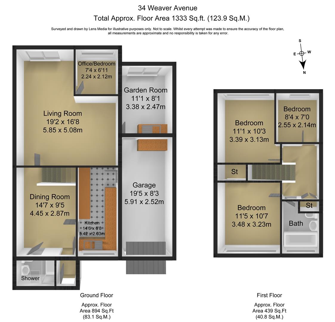 This modern property briefly comprises lounge with sliding doors onto the rear garden, dining room, fitted kitchen, contemporary shower room and useful office/fourth bedroom. To the first floor there are three bedrooms (two double bedrooms and a single) plus family bathroom.
