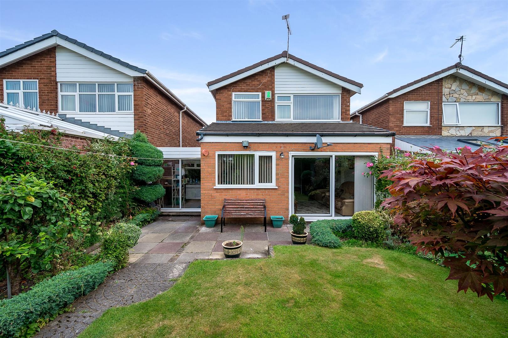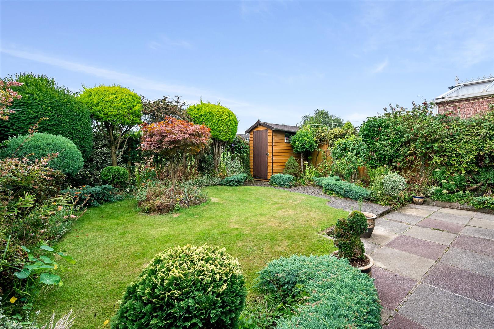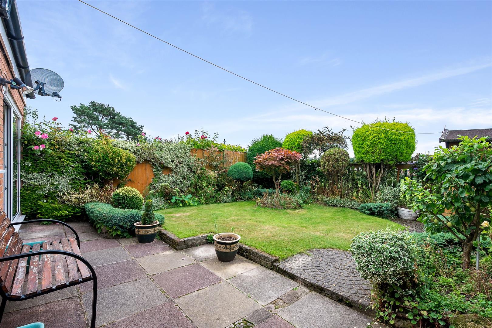 The lovely rear garden and patio area overlooks school playing fields.