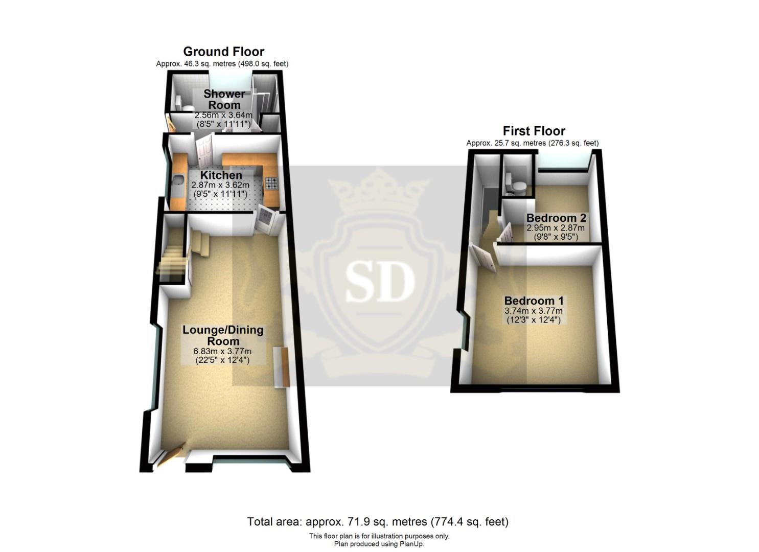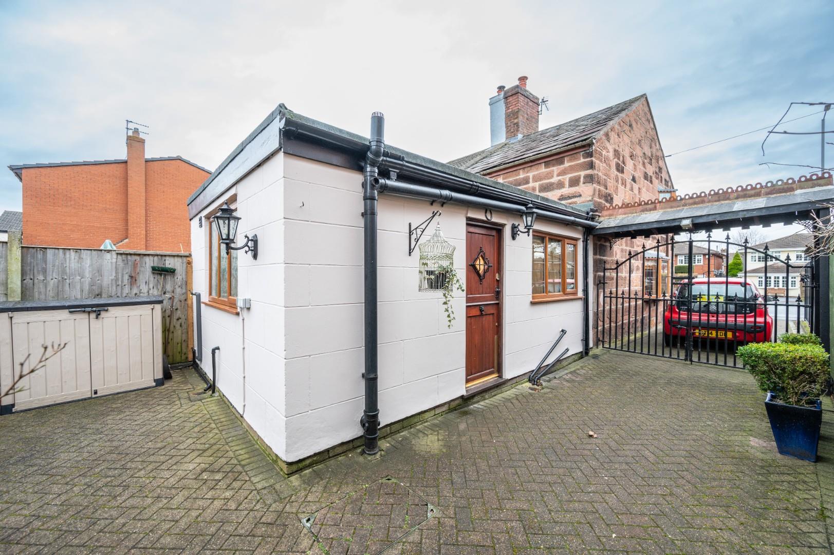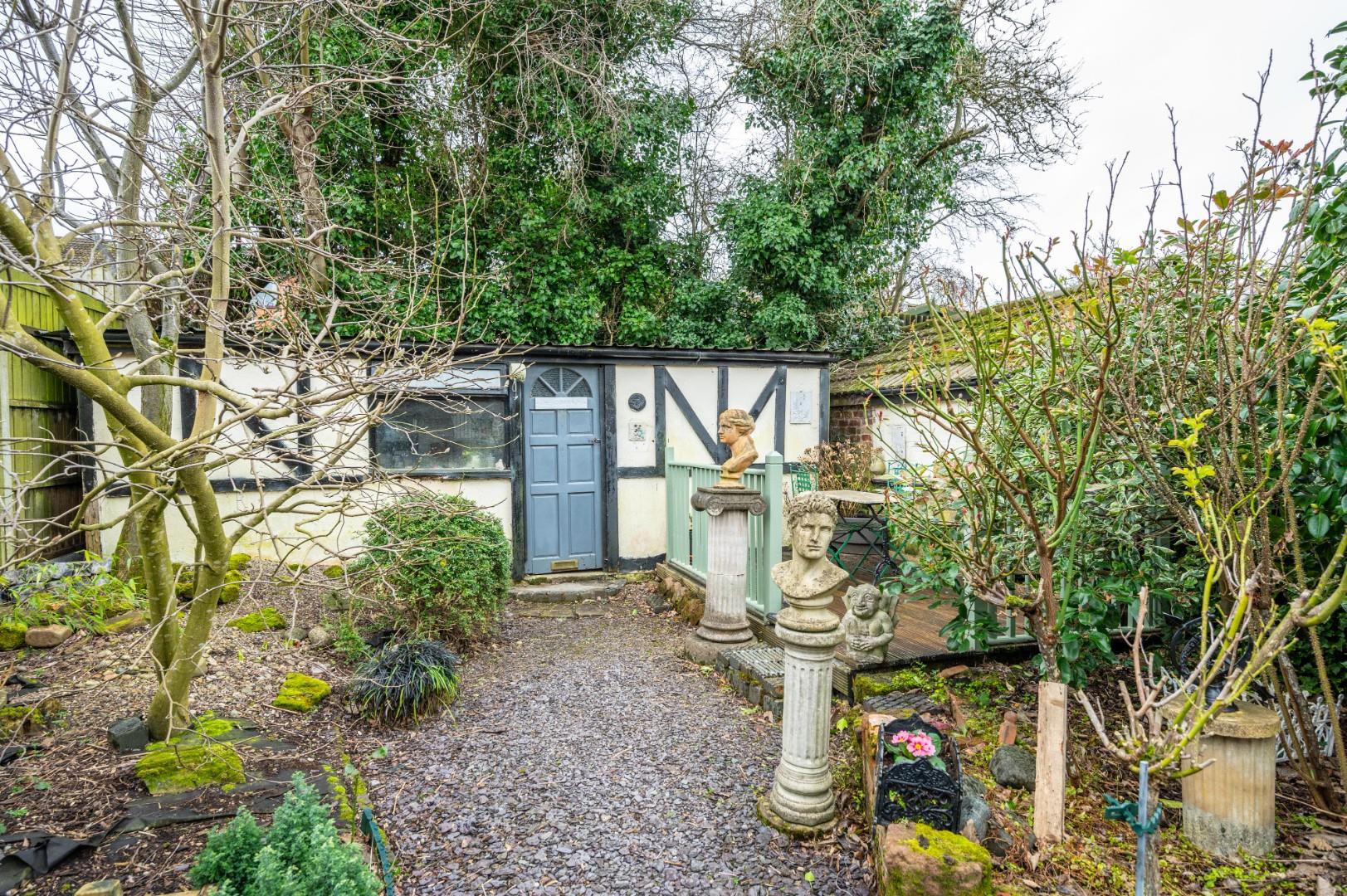 Outside, the pretty courtyard garden is low maintenance and has a full-width shed with power and light. To the front, there are wrought iron gates and railings, and a driveway to the side for off road parking.