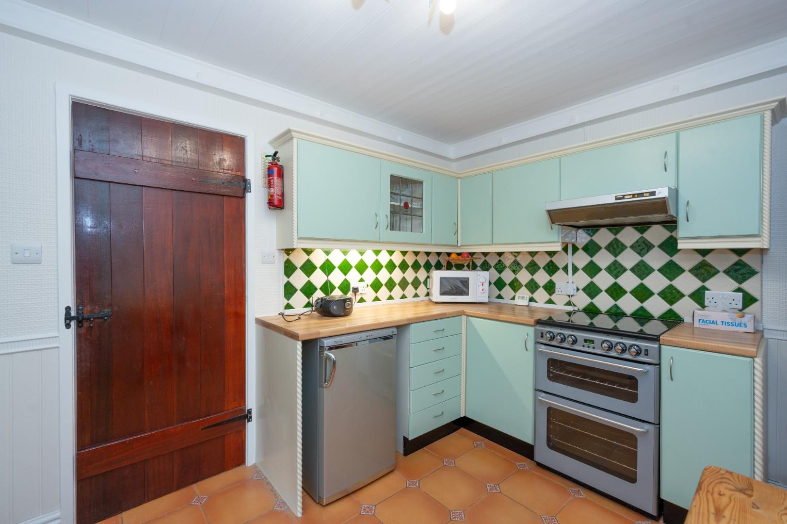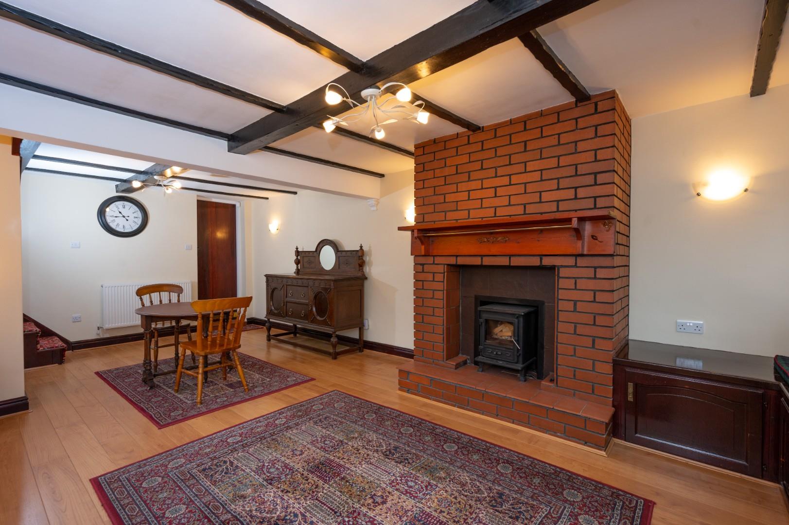 The accommodation briefly comprises: through lounge with double aspect windows, log burner and feature fireplace, beams to the ceiling, quaint country-style fitted kitchen with oven, fridge, freezer and washing machine, and a good-sized wet room with electric shower, wall heater, sink with vanity unit and wc. To the first floor, there are two bedrooms with a sink and wc off bedroom two.