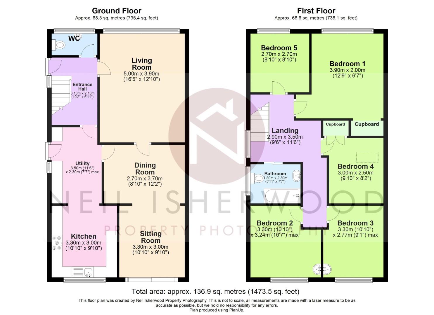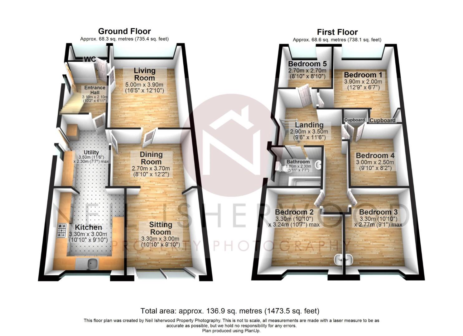 The property boasts an entrance hallway, a downstairs WC, a living room, a dining room, a sitting room, and large kitchen area. The first floor includes five spacious bedrooms and a family bathroom. Outside, the front provides off-road parking for added peace of mind, while the rear features a private garden with an attached garage. The garage is exceptionally long, providing ample space beyond just parking. Its length makes it ideal for various additional uses, such as setting up a home gym, creating a dedicated office space, or even adding extra storage. This property offers a truly unique space with potential for further extension.