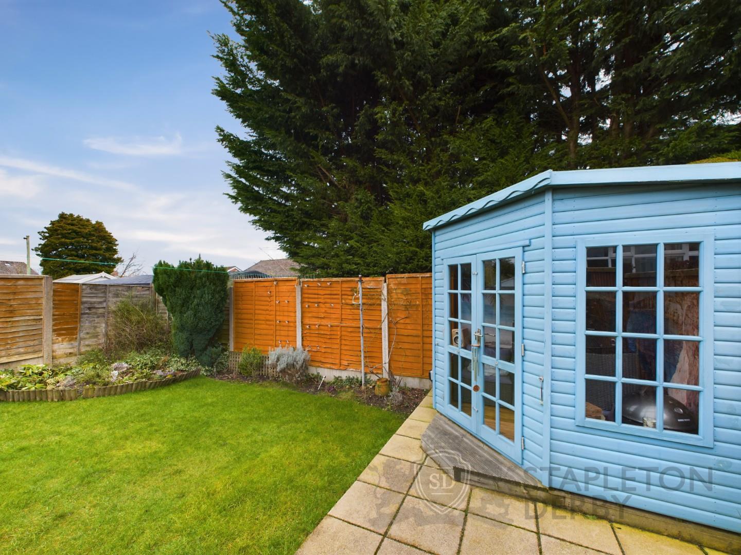 Externally, the front of the property offers off-road parking and garage access, while the rear showcases a spacious garden, a patio area, and a charming garden room.