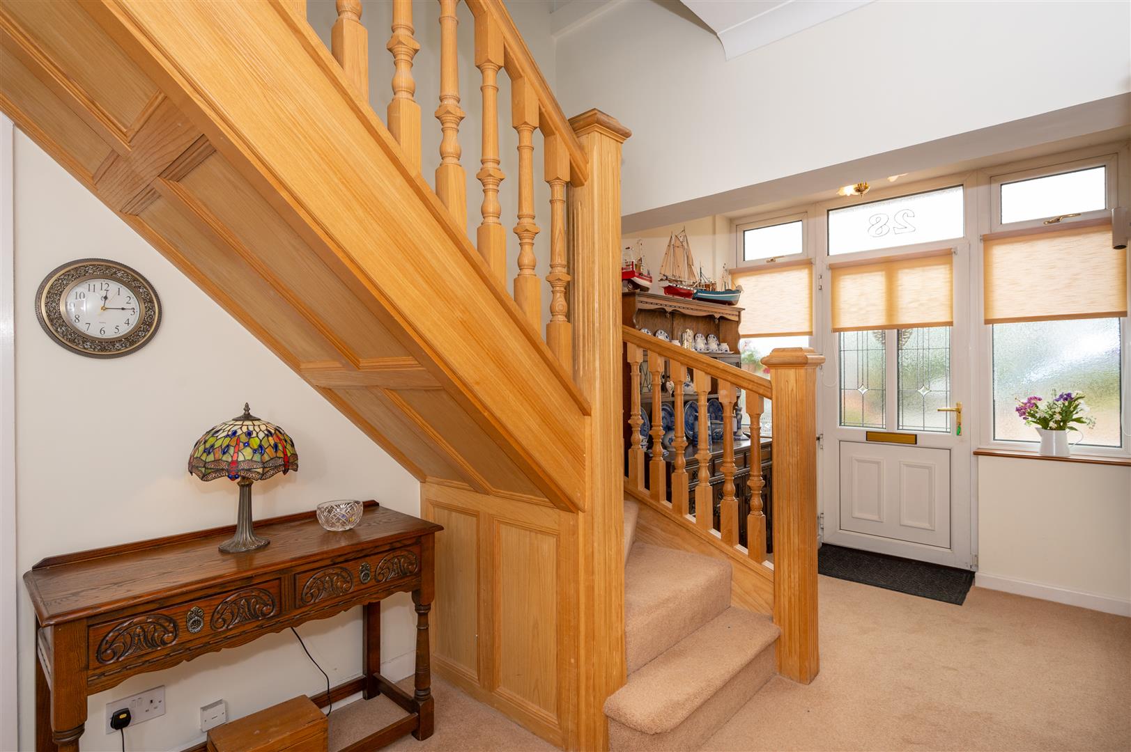 Entrance into the spacious welcoming hall through a double glazed front door, opaque windows to the front, oak staircase leads to the first floor landing, access to downstairs rooms.