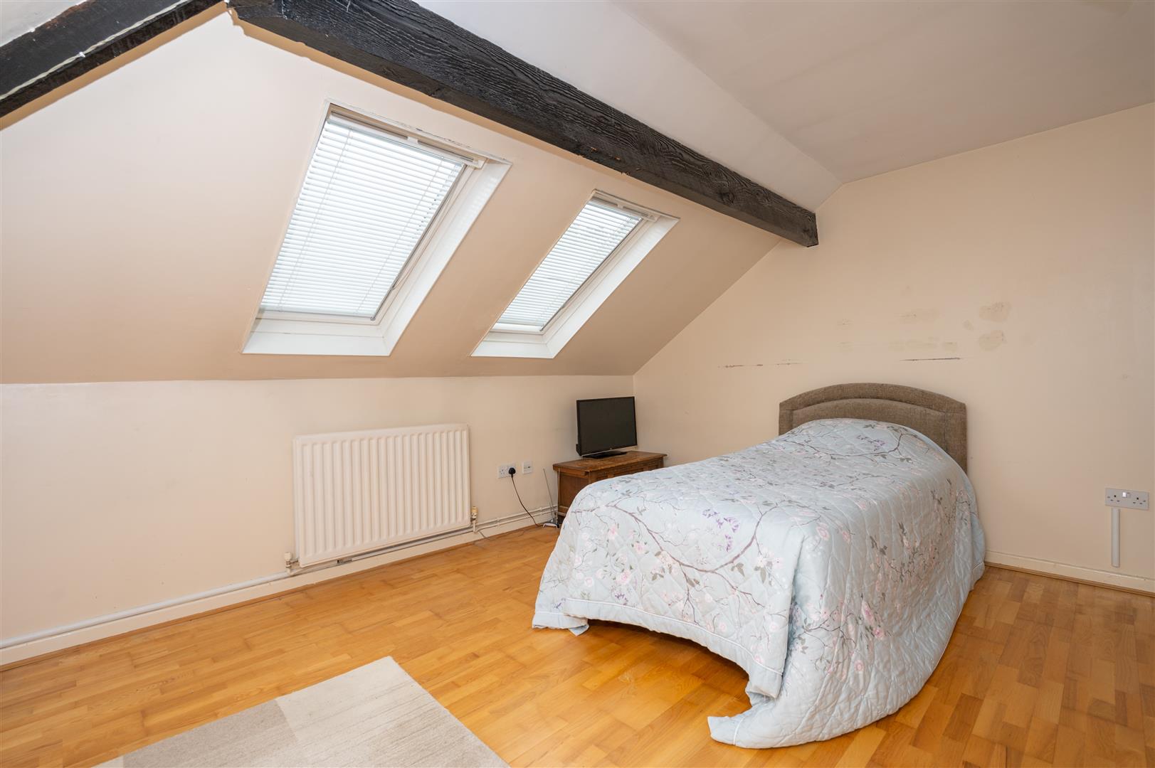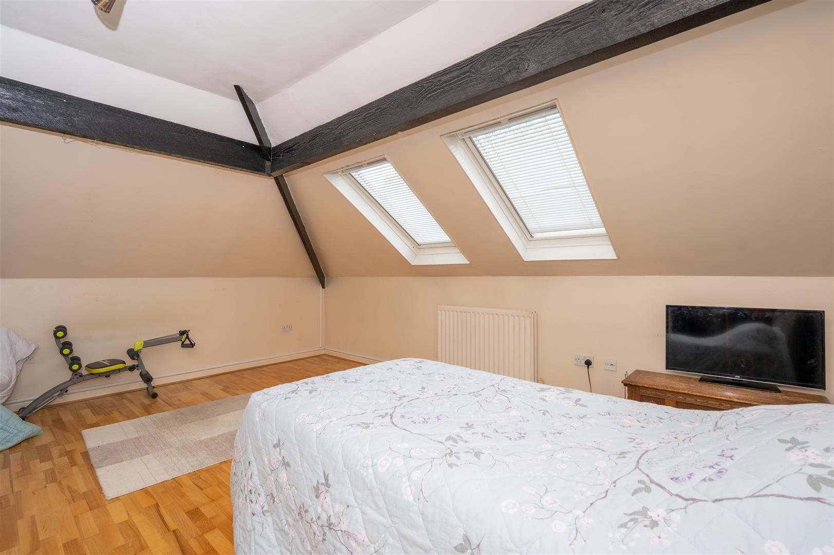Exposed beams, two Velux windows, laminate flooring, limited head height.