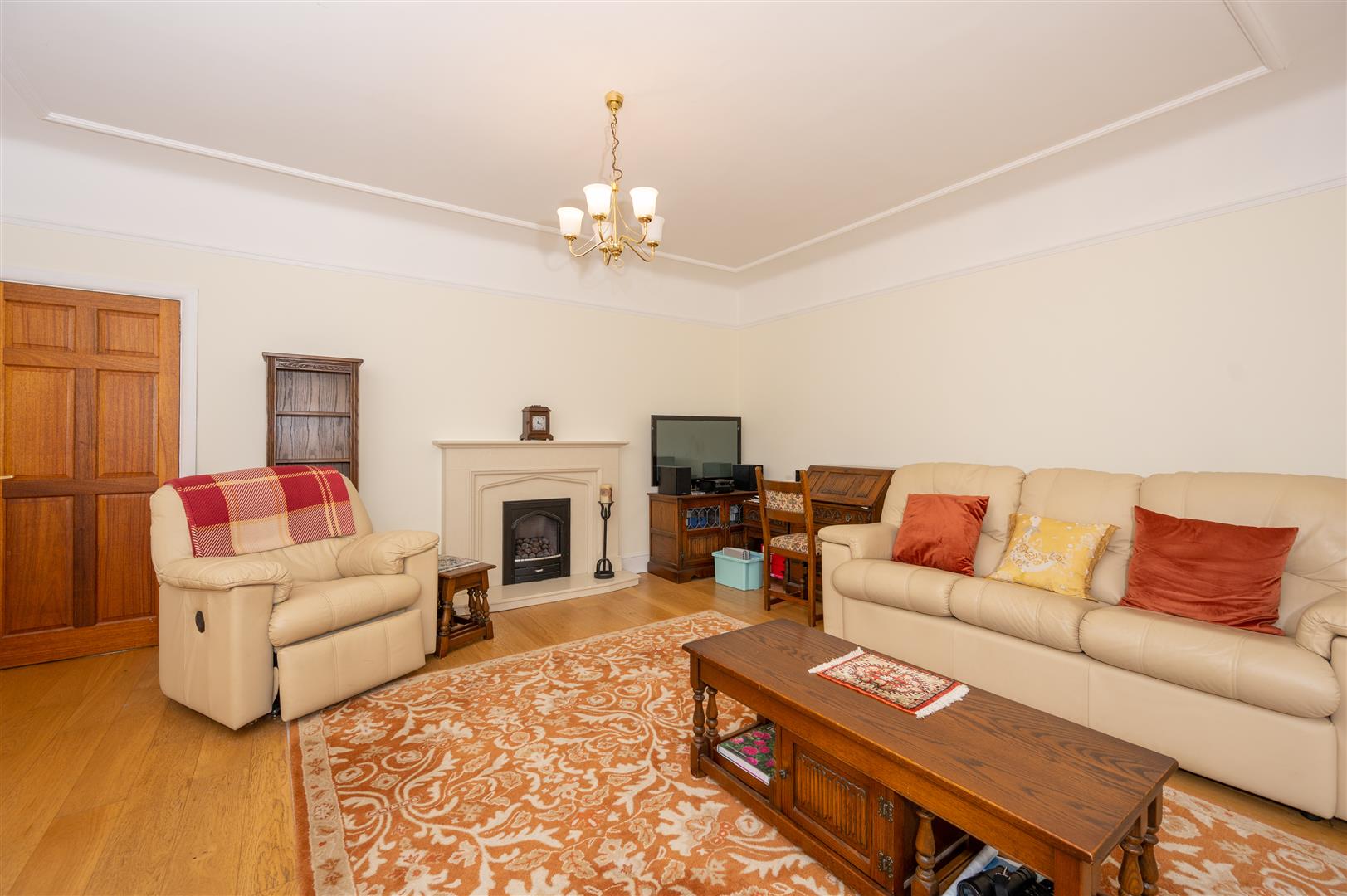 A lovely spacious lounge overlooking the stunning garden with feature fireplace and gas fire, french doors to the garden, solid wood flooring throughout, high ceilings with two light fittings, access to the sun room.