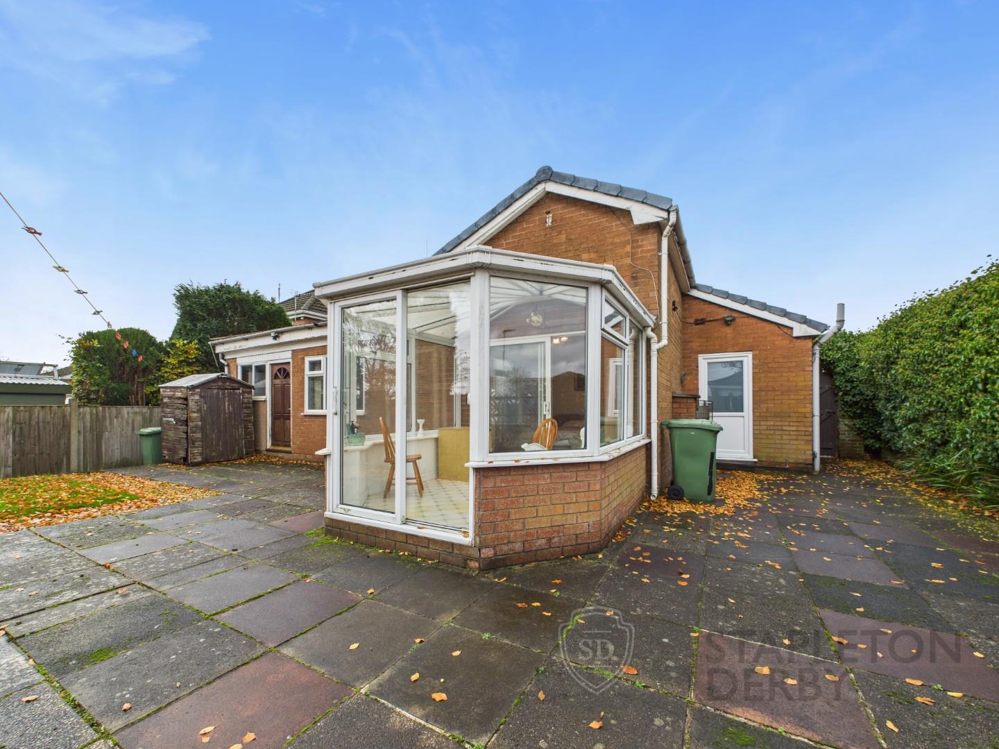 In need of modernisation, the bungalow boasts an inviting layout that includes a porch, welcoming entrance hallway, spacious living room, separate dining room, and a well-sized kitchen. The accommodation continues with a family bathroom and separate toilet, along with three double bedrooms—one of which could easily be utilised as an additional lounge or reception room—providing versatility to suit a variety of lifestyles,. A bright conservatory to the rear offers lovely views over the garden, perfect for enjoying the changing seasons.