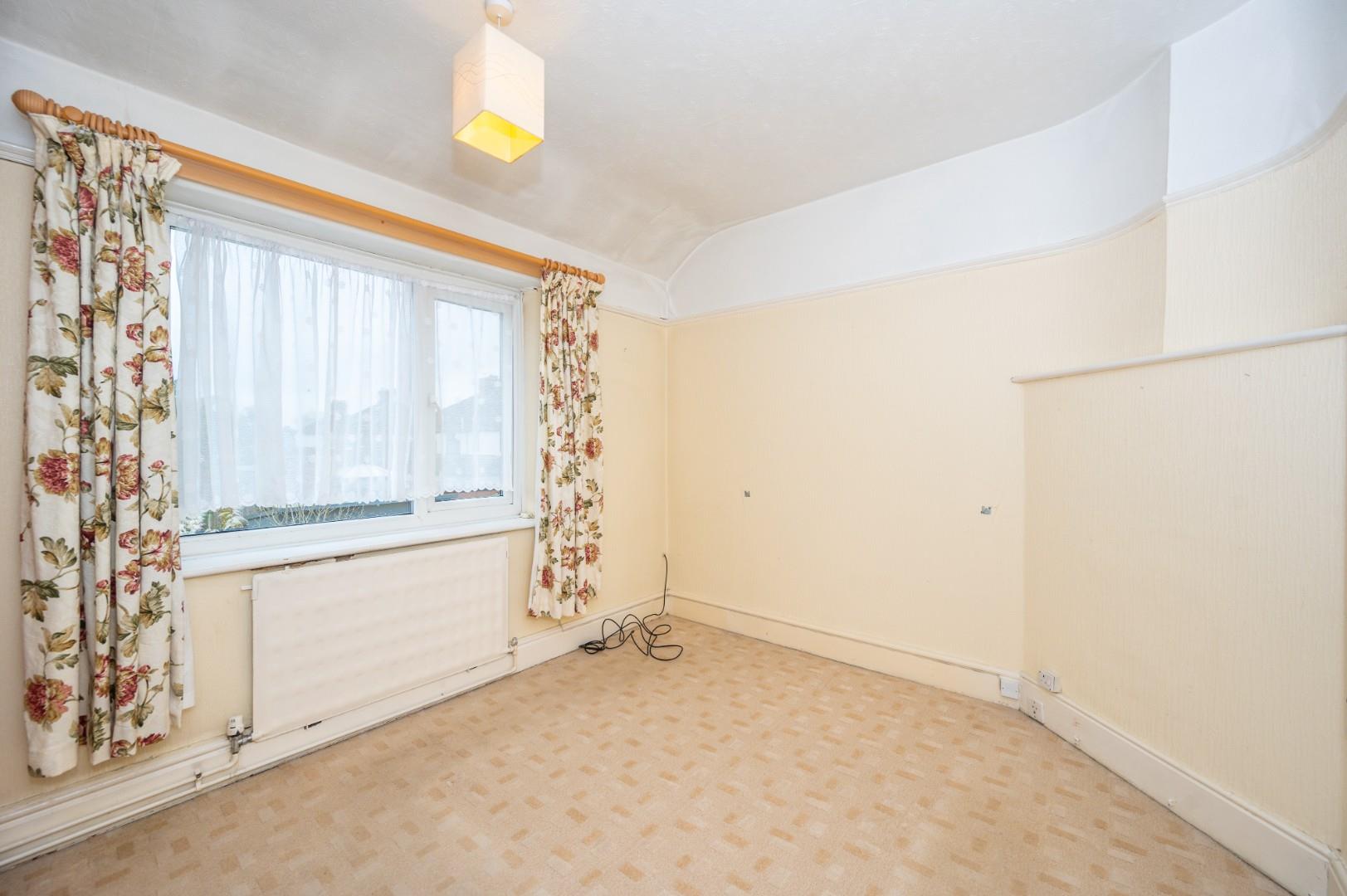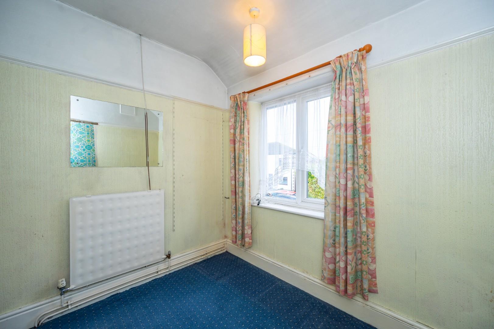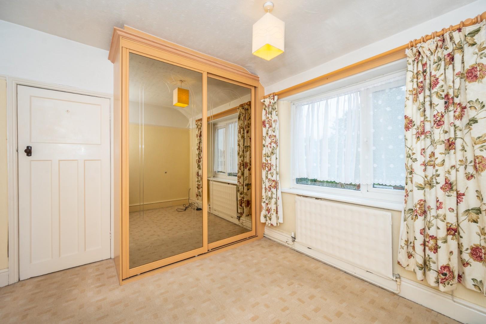 The property presents an opportunity for modernization and comprises a porch, a spacious open hallway, a downstairs WC, a connected living room, a kitchen, and a dining/conservatory area. The front of the property provides off-road parking and side access to the rear. At the back, there is a substantial garden and a detached garage.