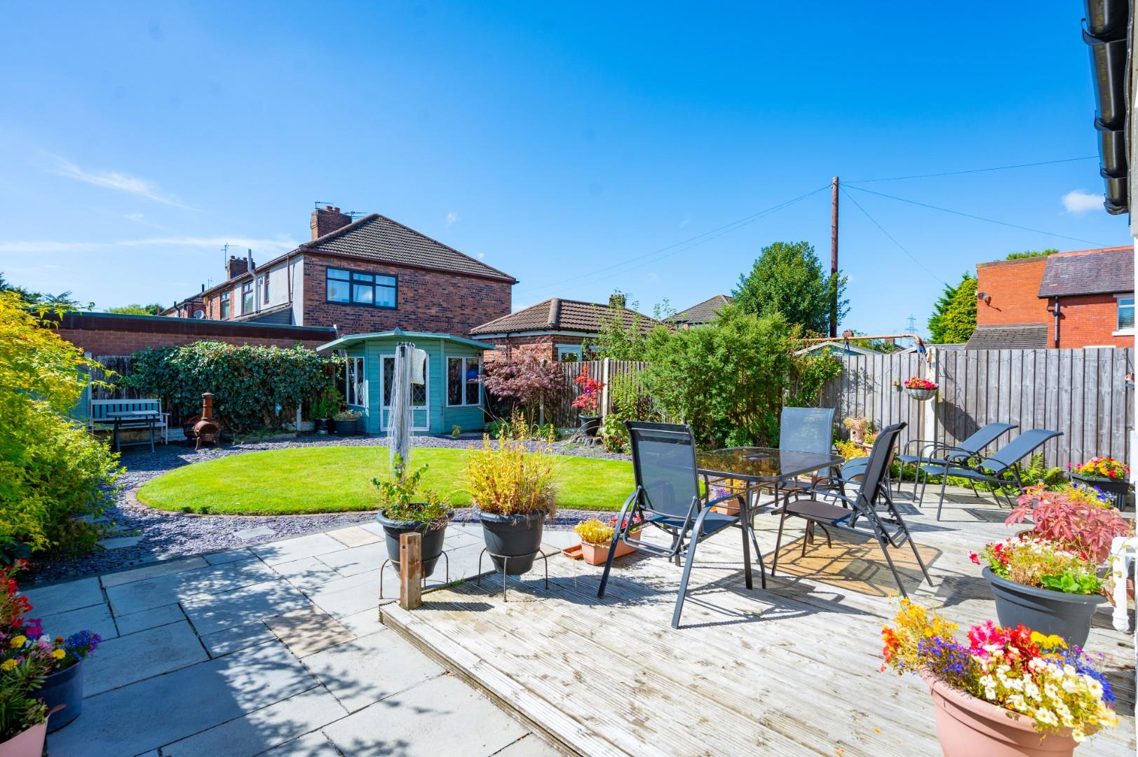 The property comprises porch, a spacious open hallway, living room, dining room and kitchen. To the first floor, there are three good size bedrooms and a family bathroom. The front of the property provides off-road parking and side access to the rear. At the back, there is a well maintained and landscaped garden and garden room.