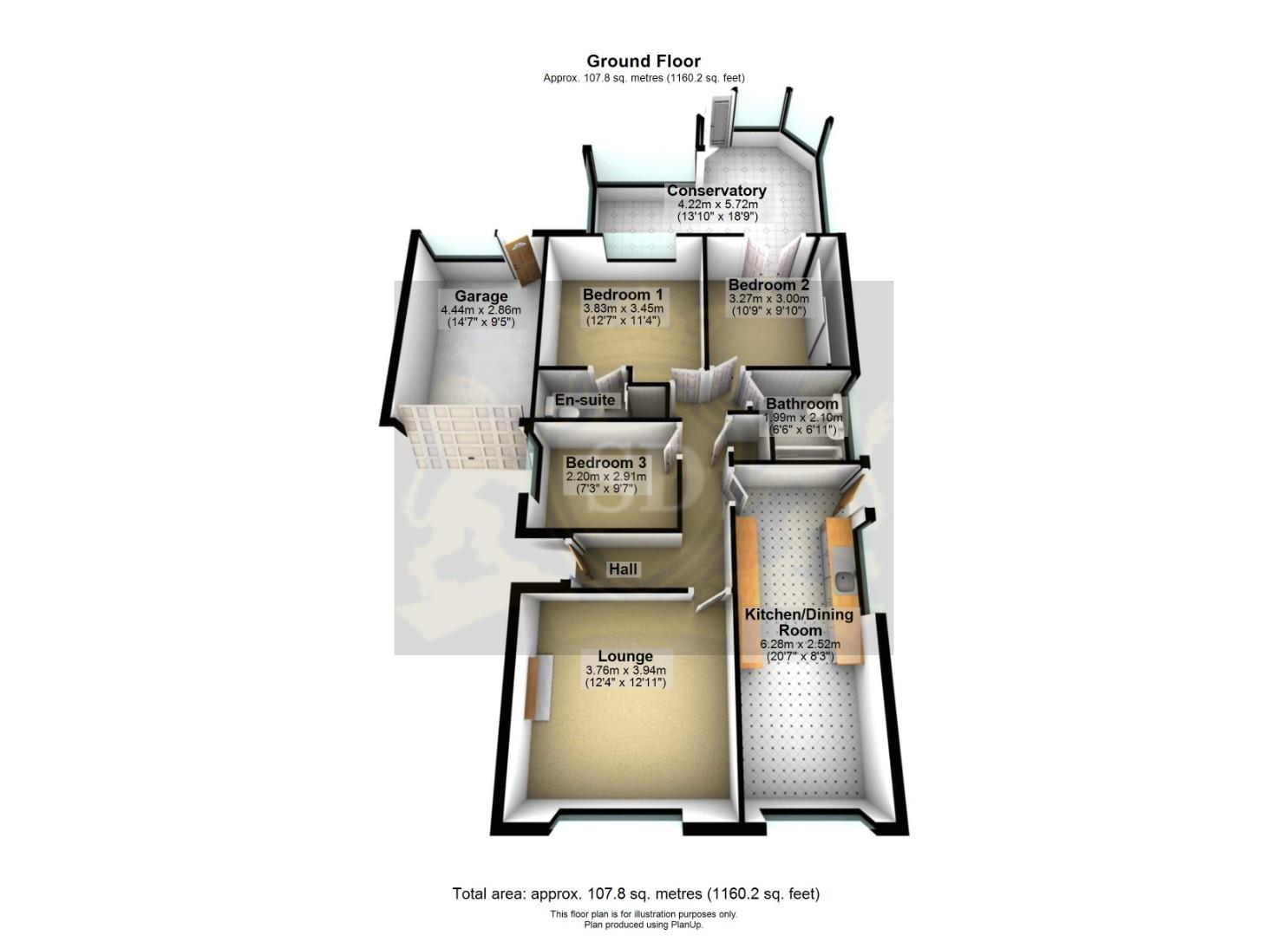 Briefly comprising entrance hall, lounge with electric fire, kitchen/diner, three bedrooms, fitted wardrobes to the master bedroom, en suite, bathroom, conservatory and attached garage where the boiler is housed. The loft is fully boarded.